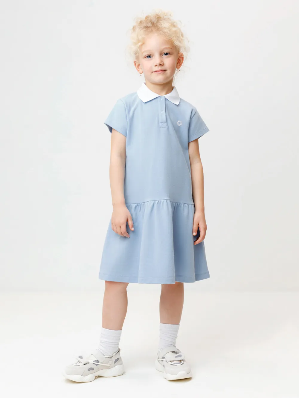 Платье-поло Crockid для девочки с воротничком и короткими рукавами. Модель выполнена из высококачественного трикотажа пике, который хорошо держит форму и приятен к телу.