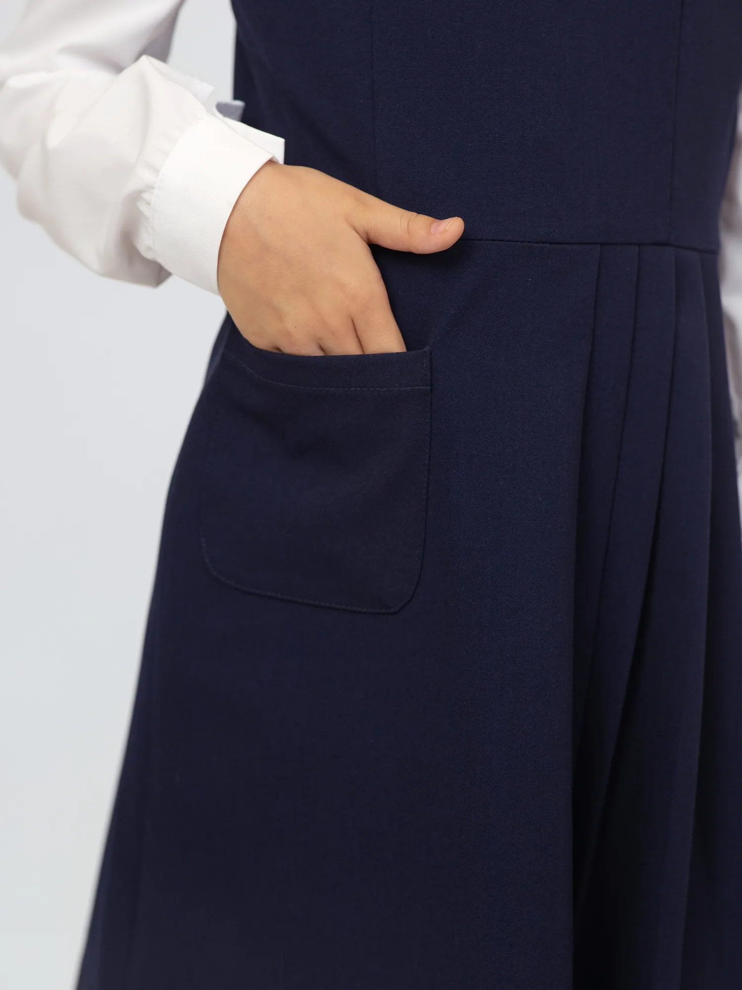 Элегантный и удобный школьный сарафан для школы, выполнен из приятной на ощупь и износостойкой ткани (68% полиэстер, 28% вискоза, 4% спандекс). Материал не мнётся, хорошо держит форму, мягкий и немного тянется — идеально для активного школьного дня.
