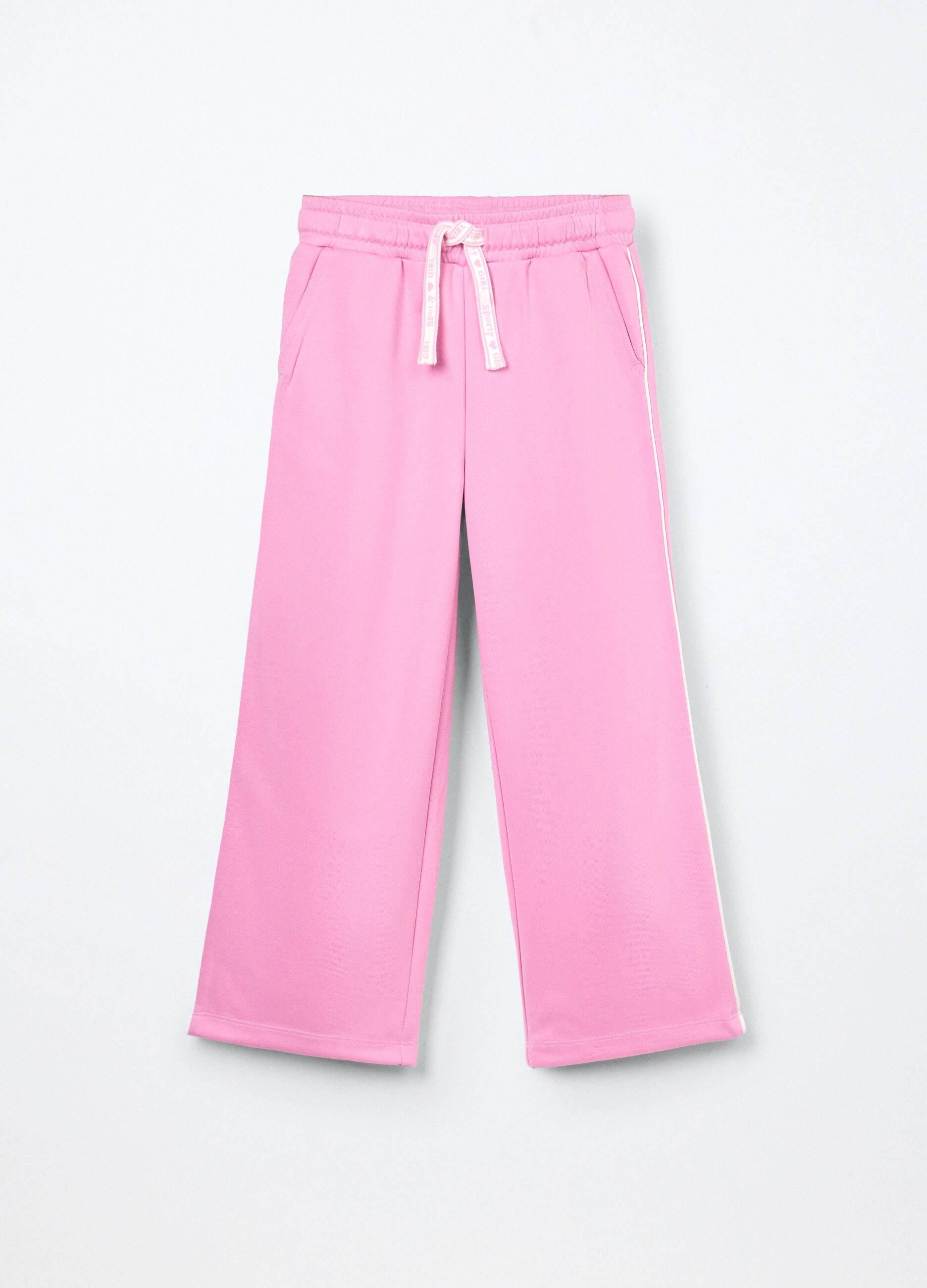 Удобные спортивные брюки с эластичной талией на резинке и шнурком для идеальной посадки. Два передних кармана и контрастные полосы по бокам создают стильный и динамичный образ. Широкий крой обеспечивает свободу движений и комфорт в активные дни.