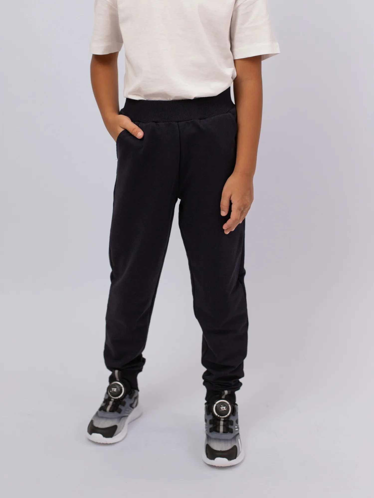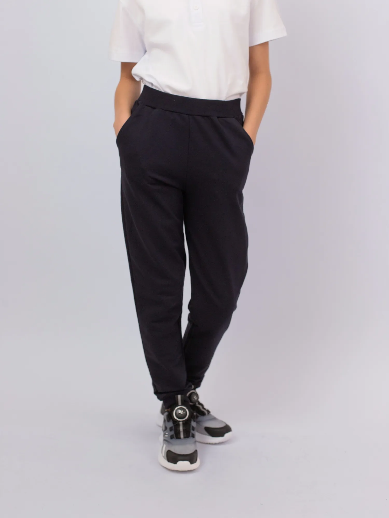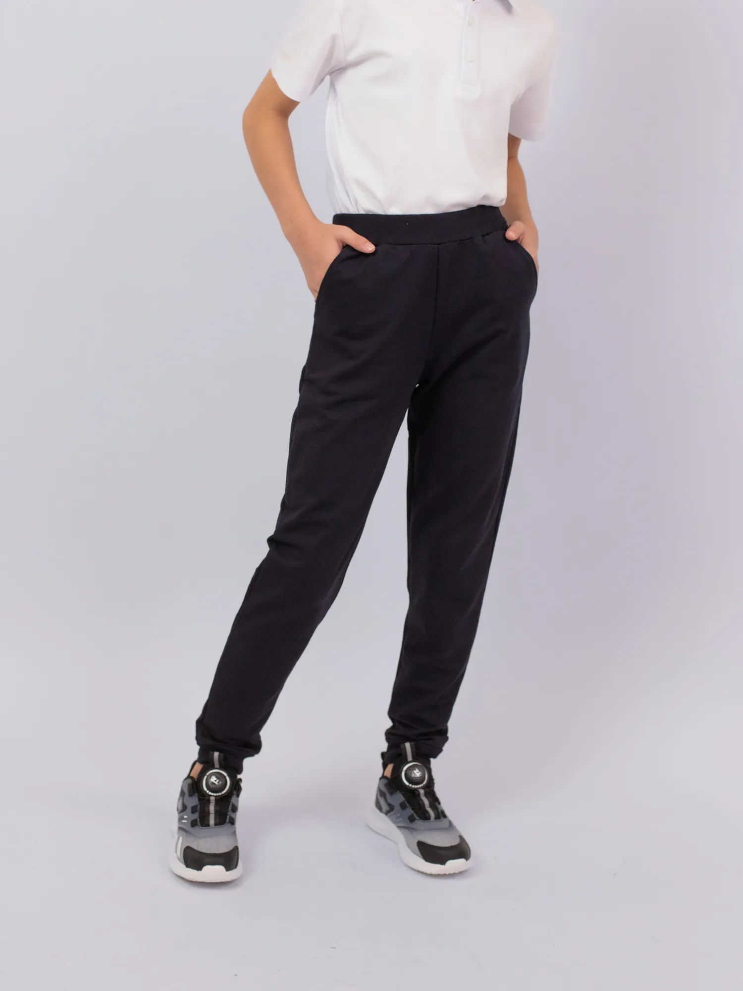 Брюки прямого кроя, с эластичным поясом для удобной посадки и двумя боковыми карманами. Манжеты по низу обеспечивают плотное прилегание и комфорт при движении. Отличный вариант для школьных занятий физкультурой.