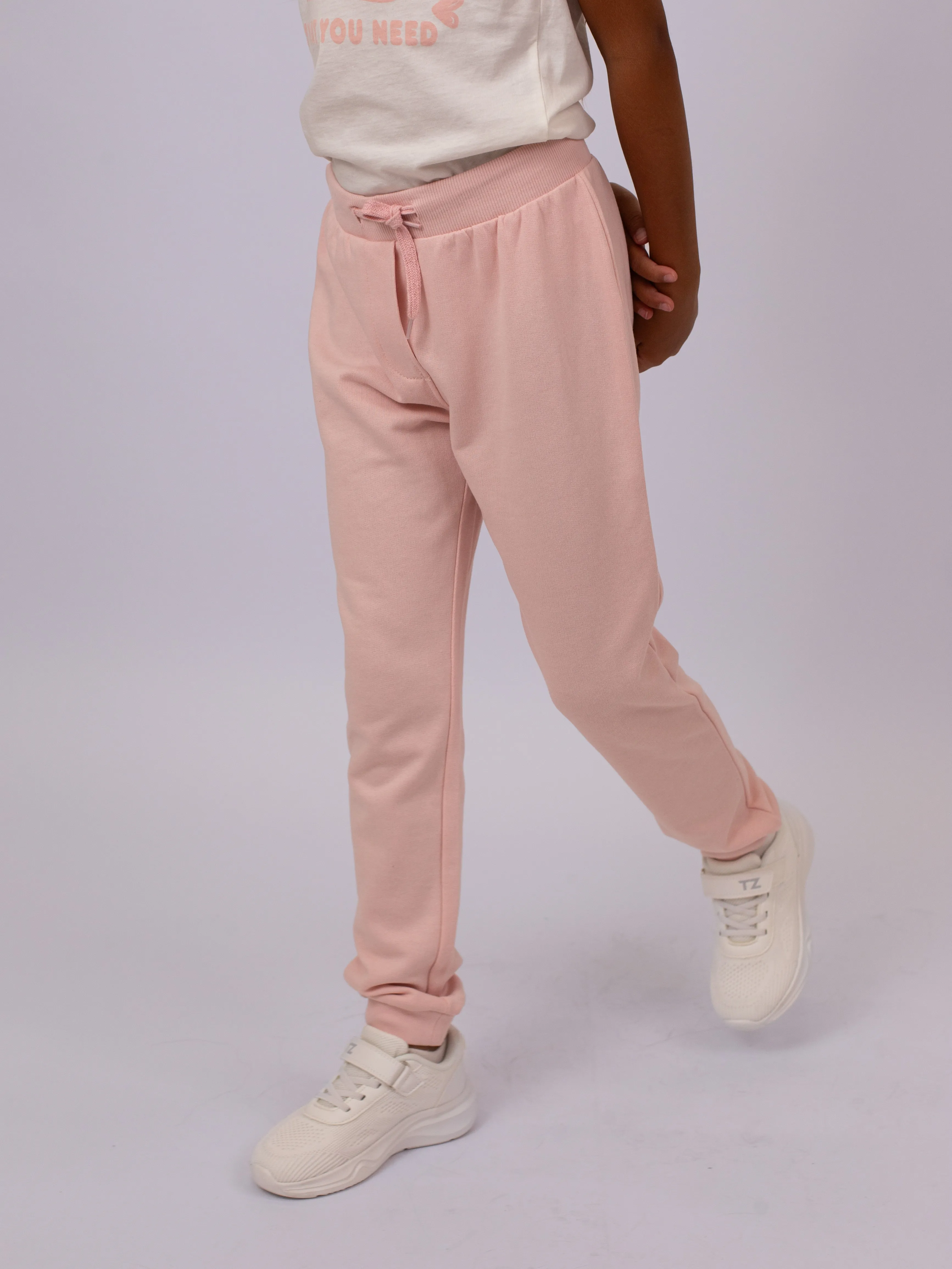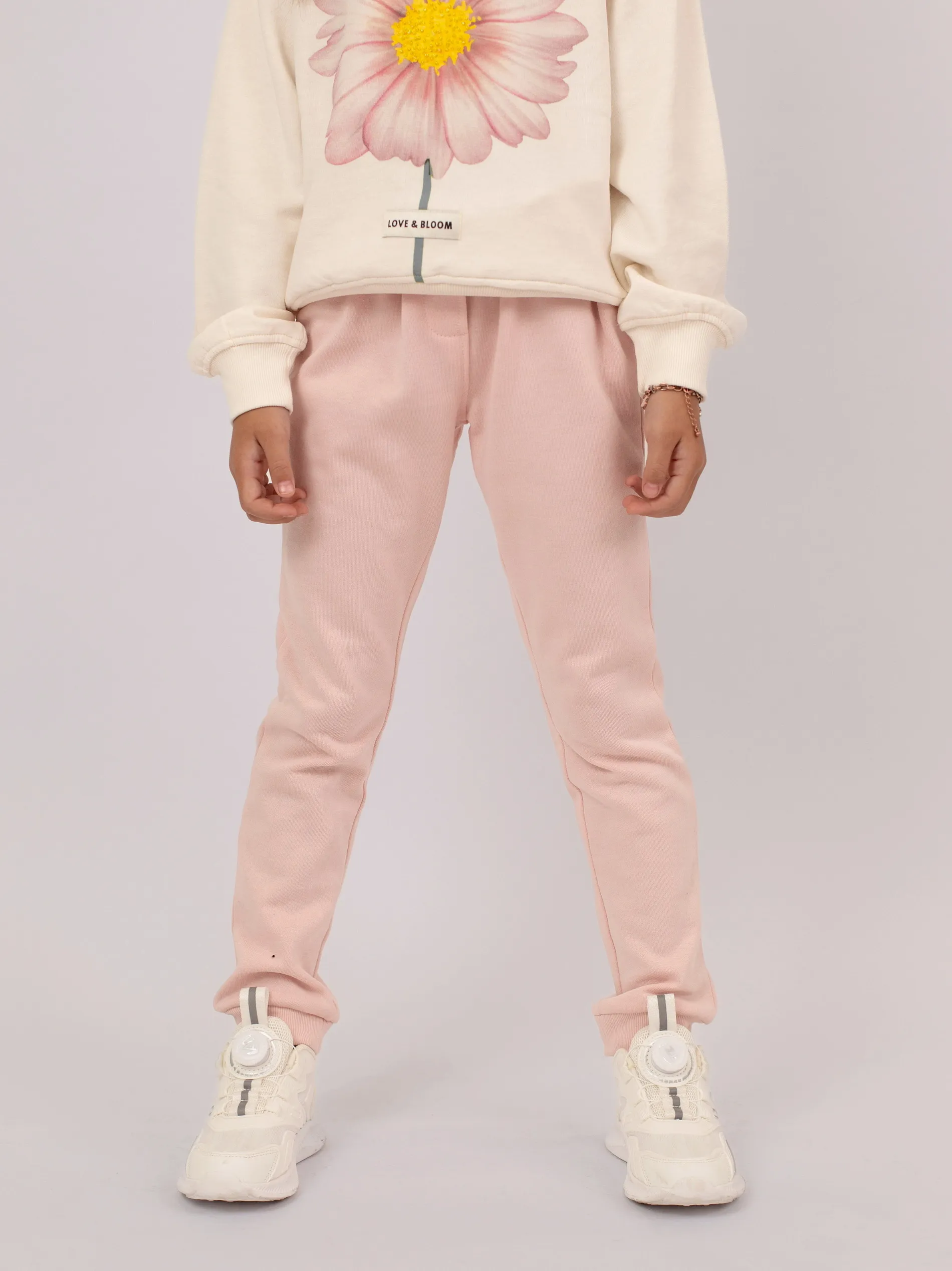 Спортивные брюки для девочки из флиса с мягким начесом, снабжённые манжетами внизу и регулируемым поясом на шнурке. Состав: 60% хлопок, 40% полиэстер. Комфортные и тёплые, идеально подходят для активных игр и прогулок.
