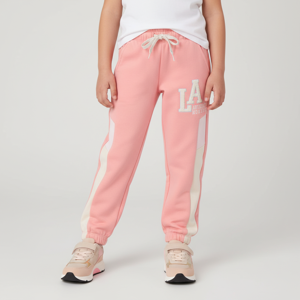 Спортивные брюки для девочек из мягкого футера и свободным кроем. Эластичный пояс с блестящим шнурком удобно регулируется. Боковые карманы. Модель украшена оригинальной вышивкой и нашивкой. Эластичные манжеты создают аккуратную посадку.
