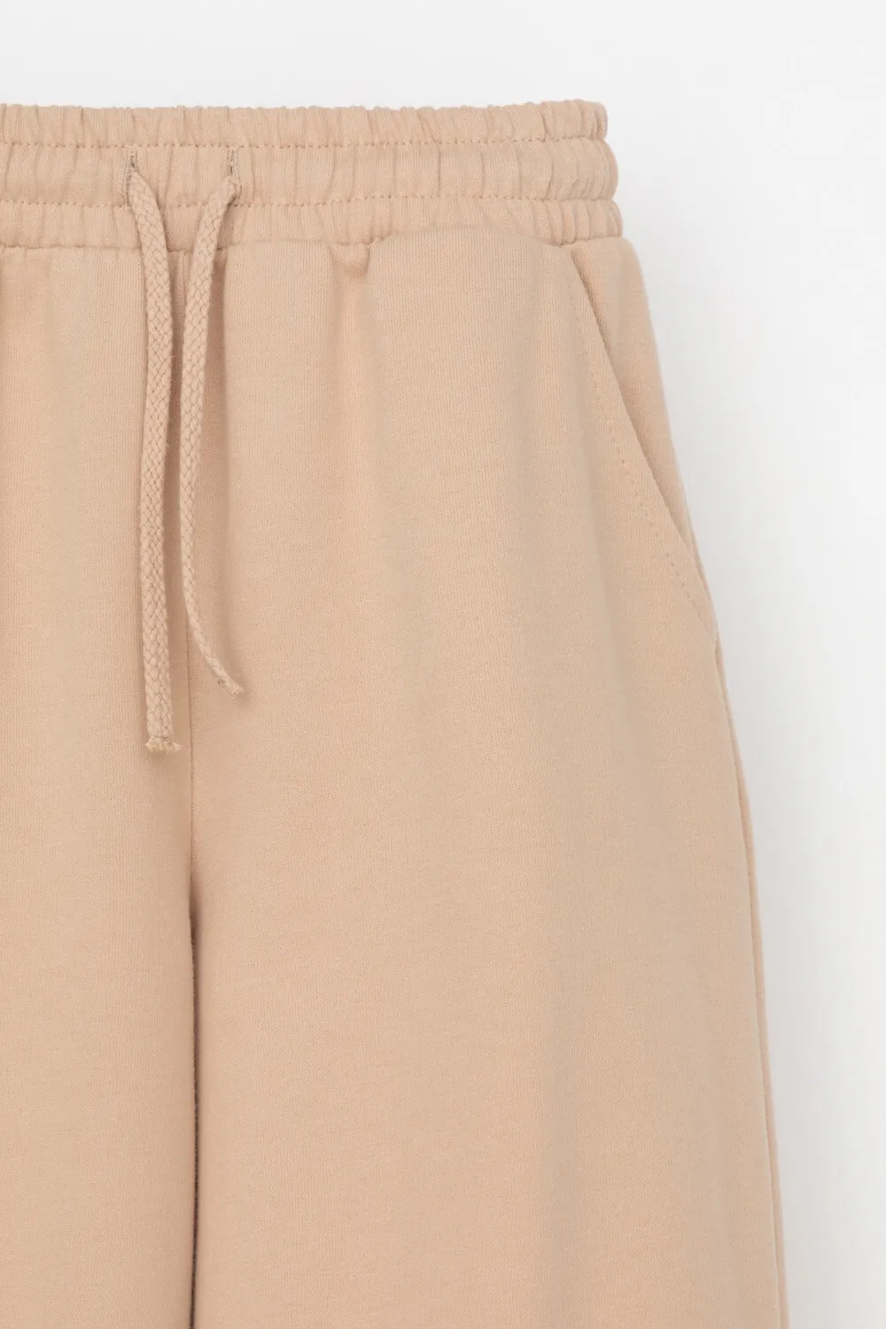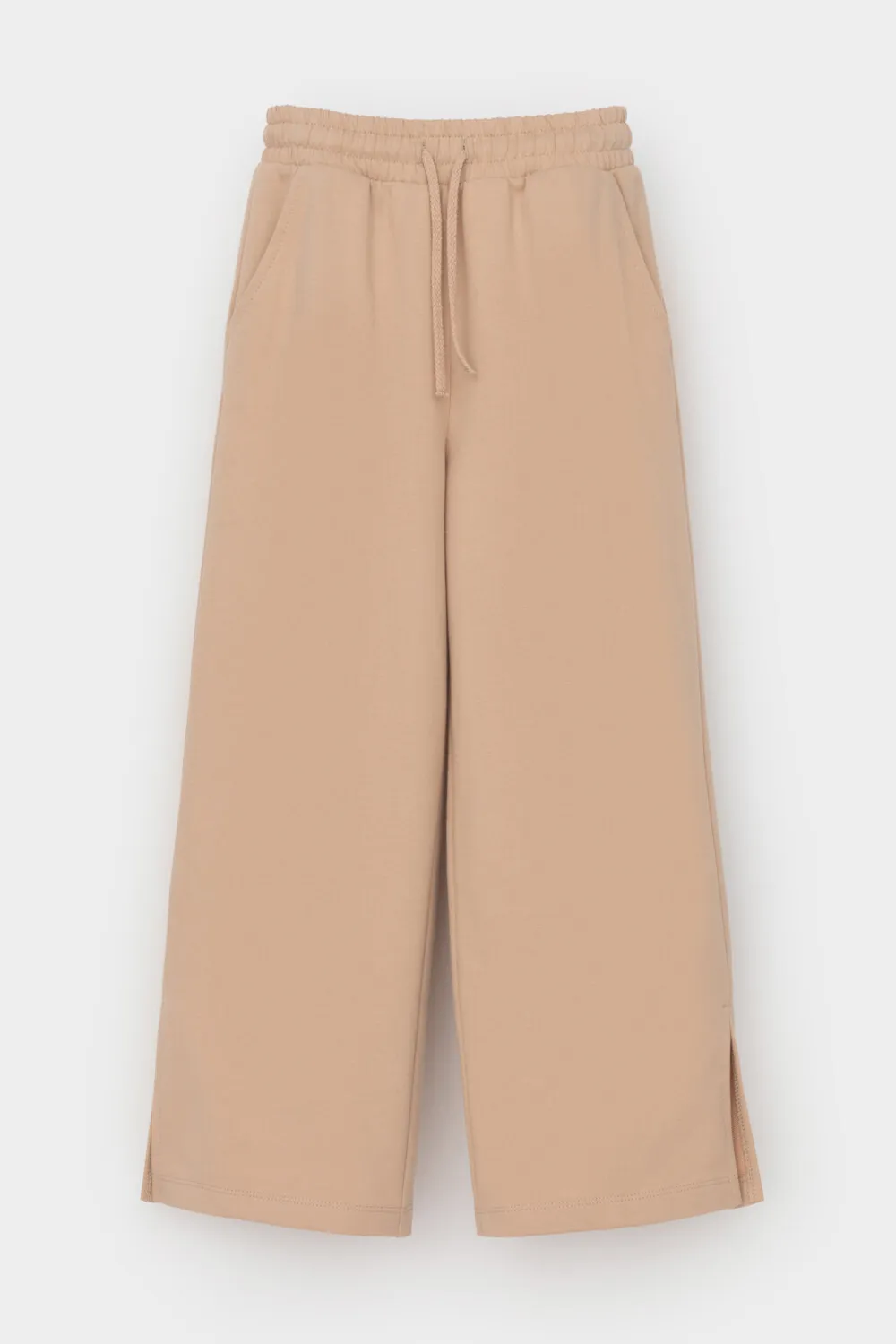 Модель прямого кроя с эластичным поясом на резинке. Пояс регулируется по ширине с помощью шнурка, что позволяет легко подобрать удобную посадку. По бокам расположены два удобных кармана.