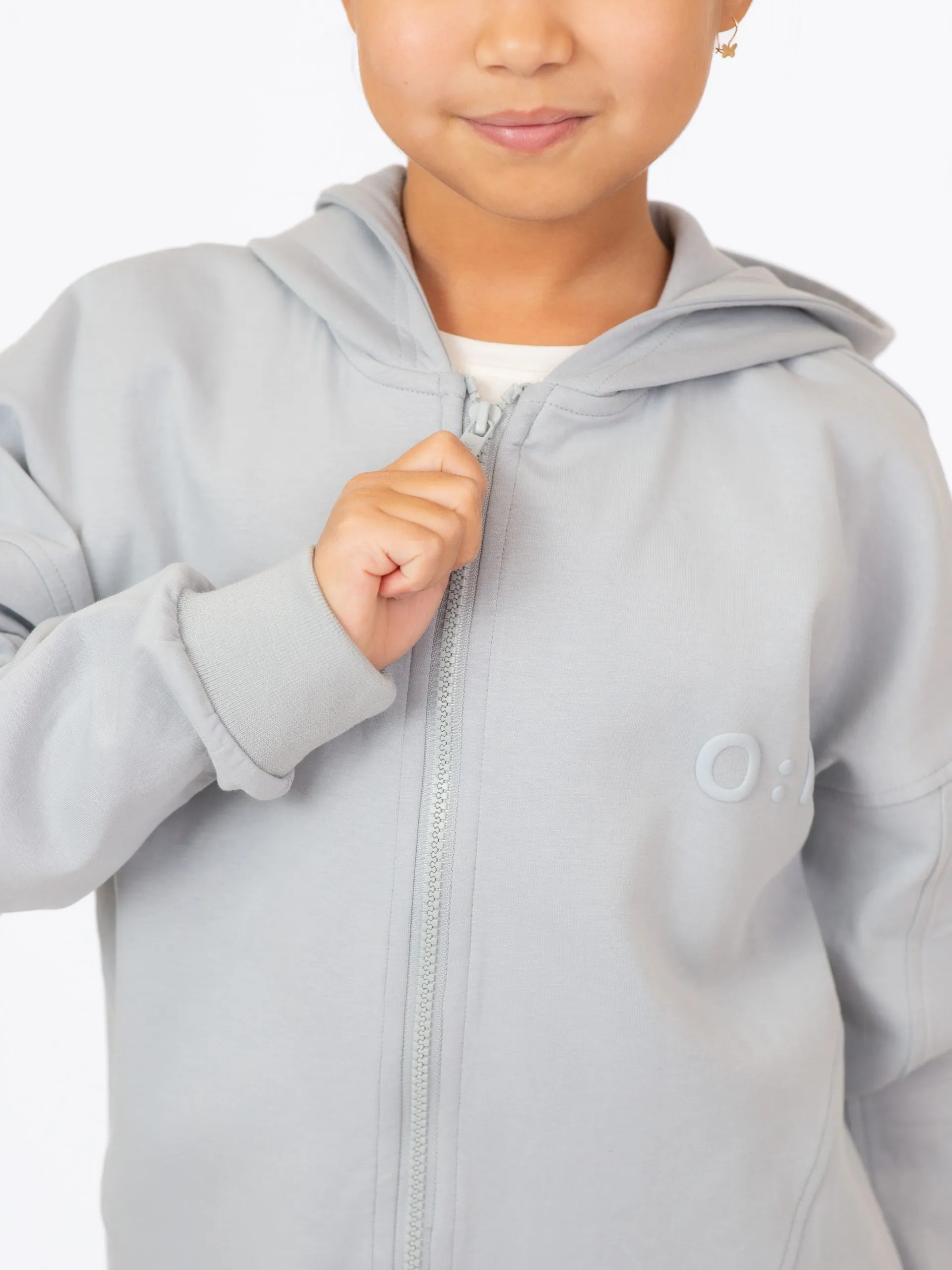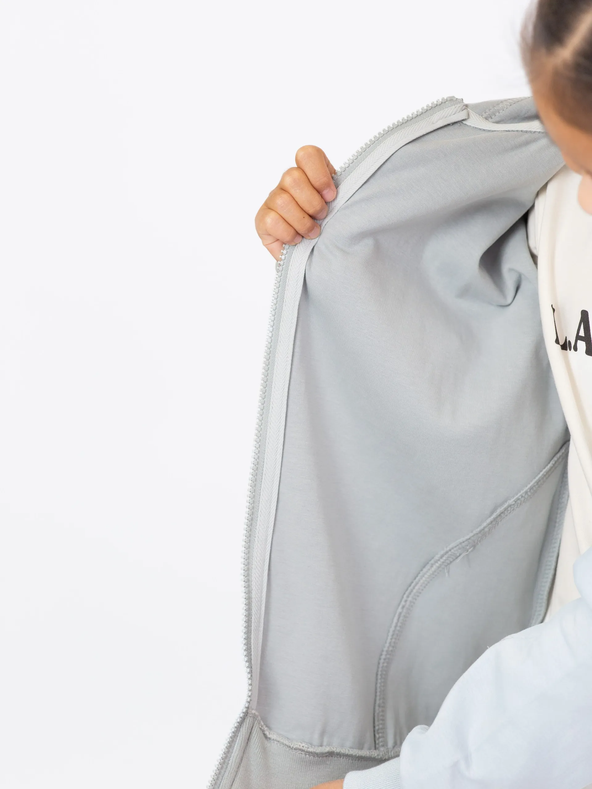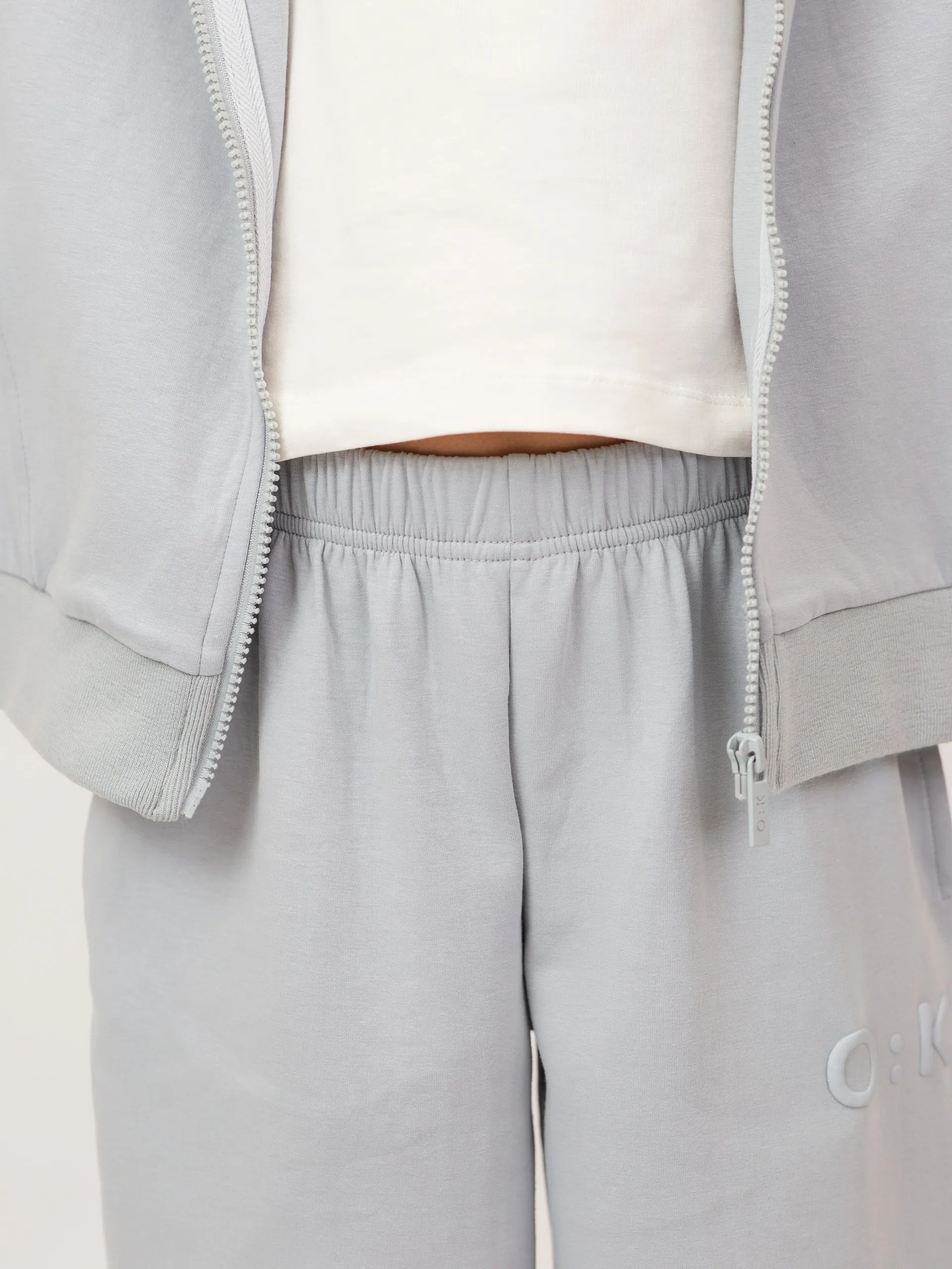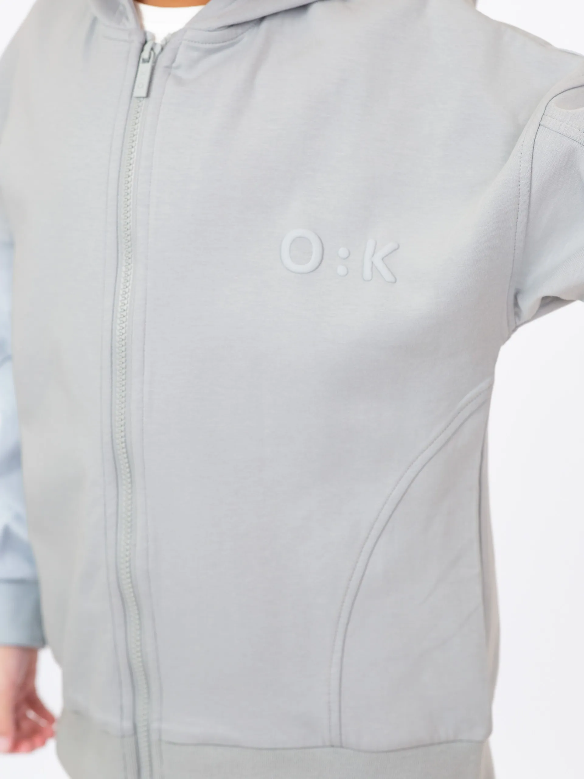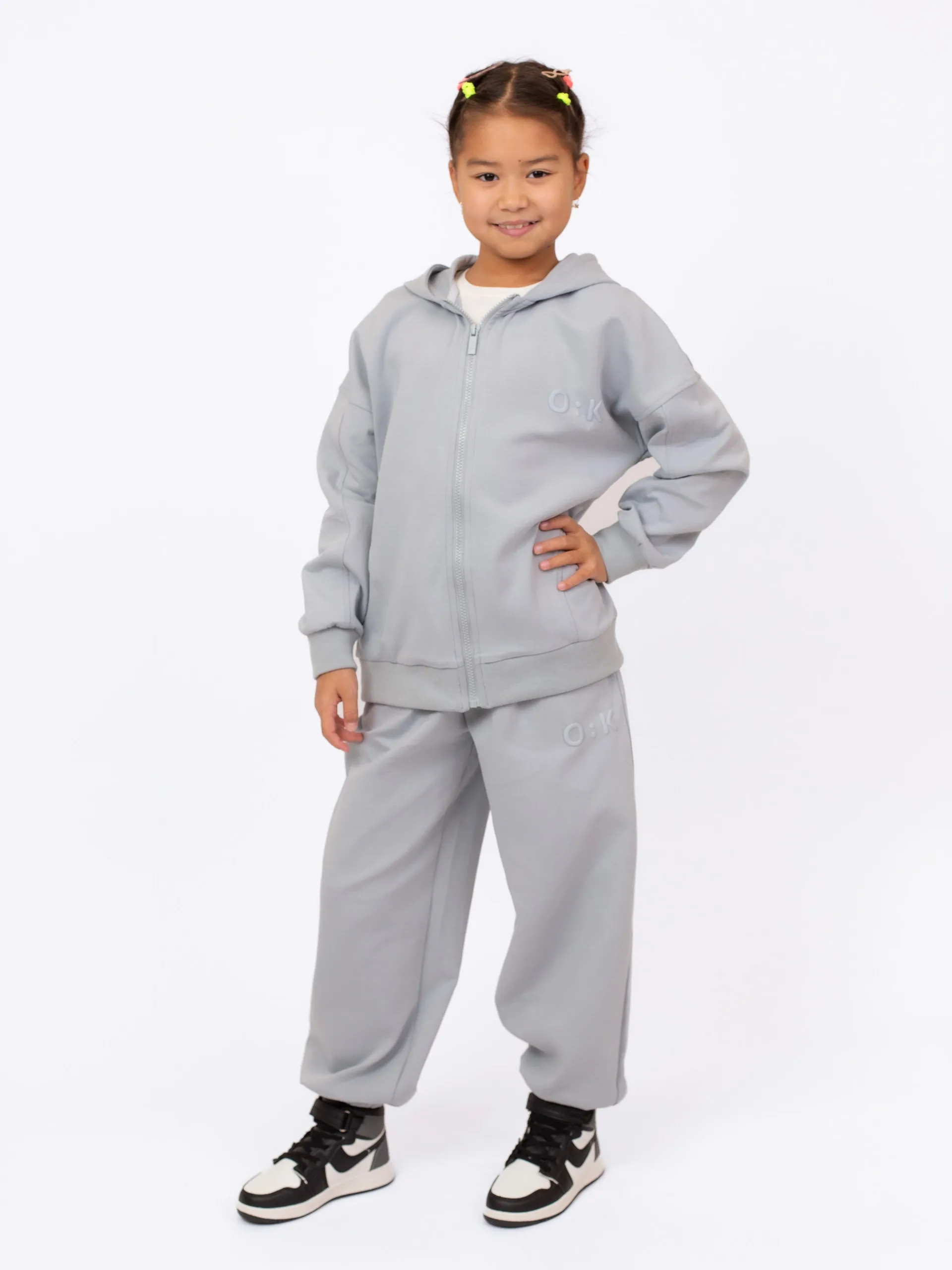 Серый детский спортивный костюм из мягкого трикотажа. Комплект состоит из худи на молнии с капюшоном и прямых брюк на резинке. Манжеты на рукавах и внизу кофты обеспечивают комфортную посадку, а свободный крой брюк не сковывает движения. Лаконичный дизайн дополнен аккуратной вышивкой логотипа. Отличный выбор для активного отдыха, прогулок и повседневного стиля.
