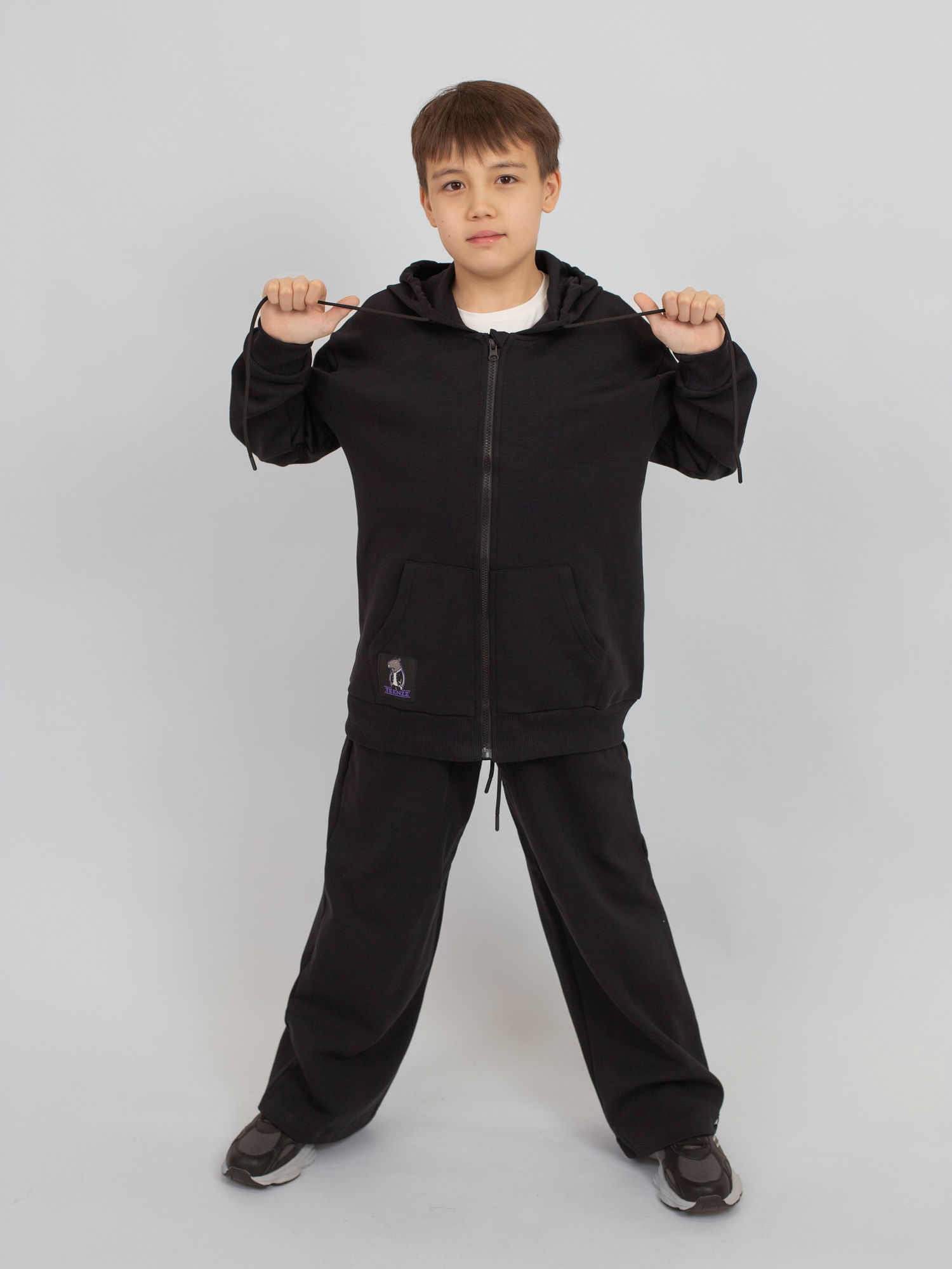 Толстовка прямого кроя без капюшона, с удобными карманами-кенгуру спереди, подойдёт для любого типа активности и не сковывает движений. Брюки свободного фасона, с эластичным поясом и регулирующим шнурком, обеспечивают комфорт и свободу движений в течение всего дня.