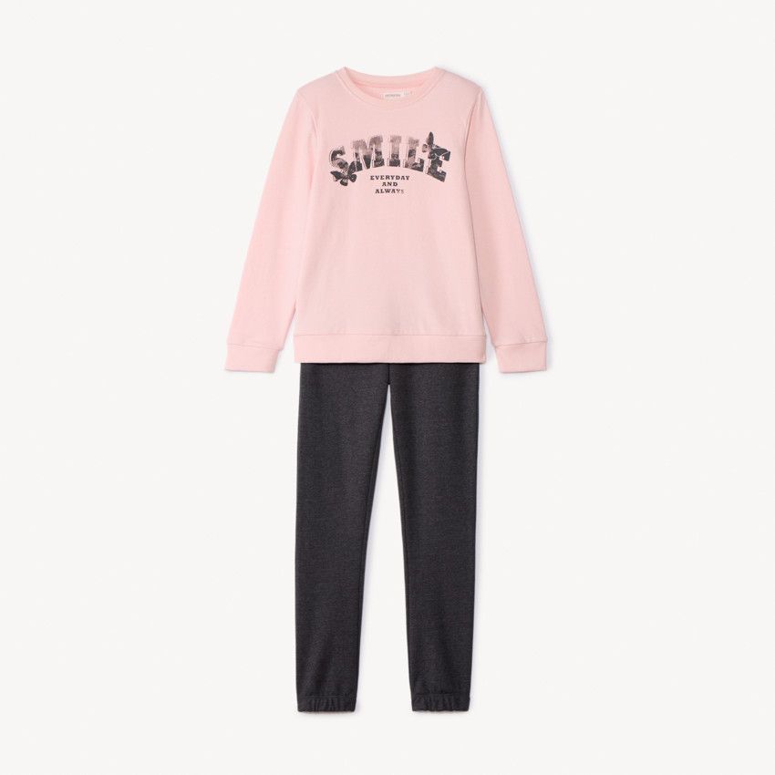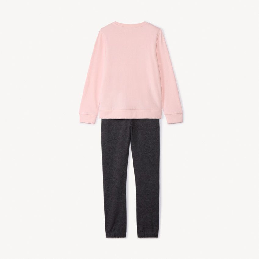 Уютный и практичный спортивный костюм из флиса для девочки — идеальный вариант для прохладной погоды. В комплект входят толстовка с длинным рукавом и брюки.