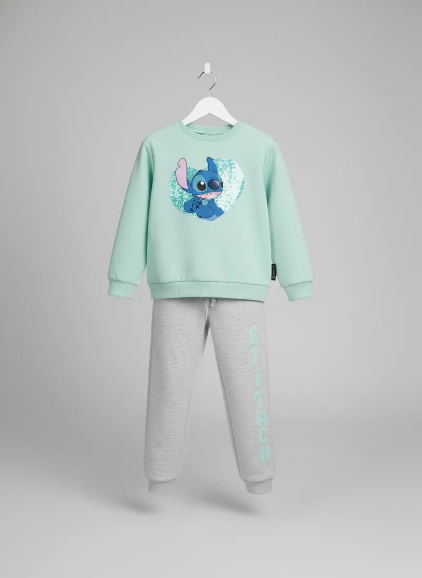 Спортивный костюм для девочки в стиле Stitch — яркий и модный вариант для активных будней и прогулок. В центре расположен эффектный принт Stitch с блестящими яркими пайетками, который сразу притягивает внимание. Мягкая и эластичная ткань из полиэстера, вискозы и эластана приятна к телу, хорошо тянется и сохраняет форму. Брюки на шнурке обеспечивают комфортную посадку, а практичные карманы добавляют функциональности. Отличный выбор для стильных и подвижных девочек.