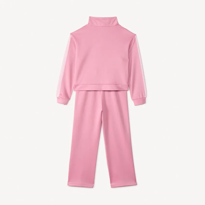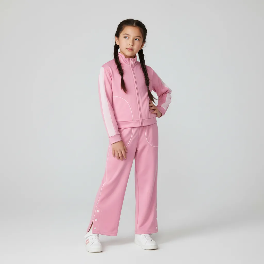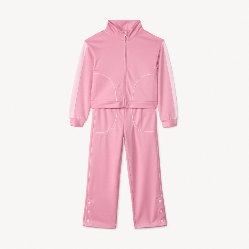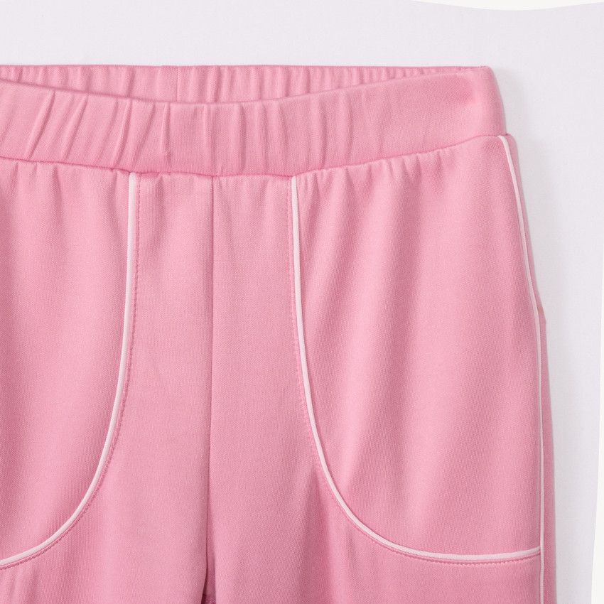 Брюки украшены контрастной полоской по бокам, а внизу штанин расположены кнопки с разрезами, придающие модели современный и динамичный вид. Материал с составом 94% полиэстер и 6% эластан отличается эластичностью, износостойкостью и хорошо сохраняет форму. Костюм отлично подойдёт для прогулок, спорта и повседневной носки.