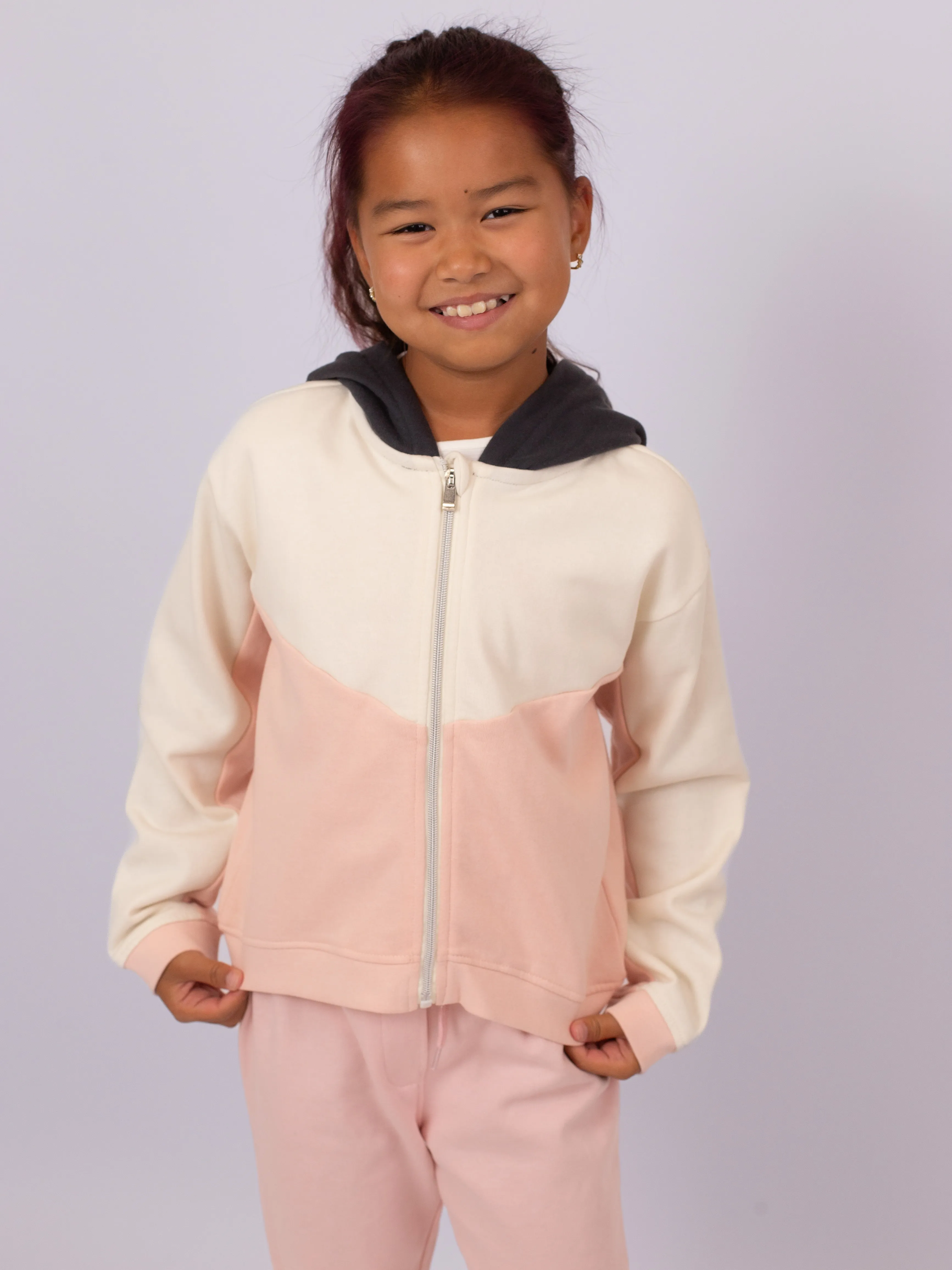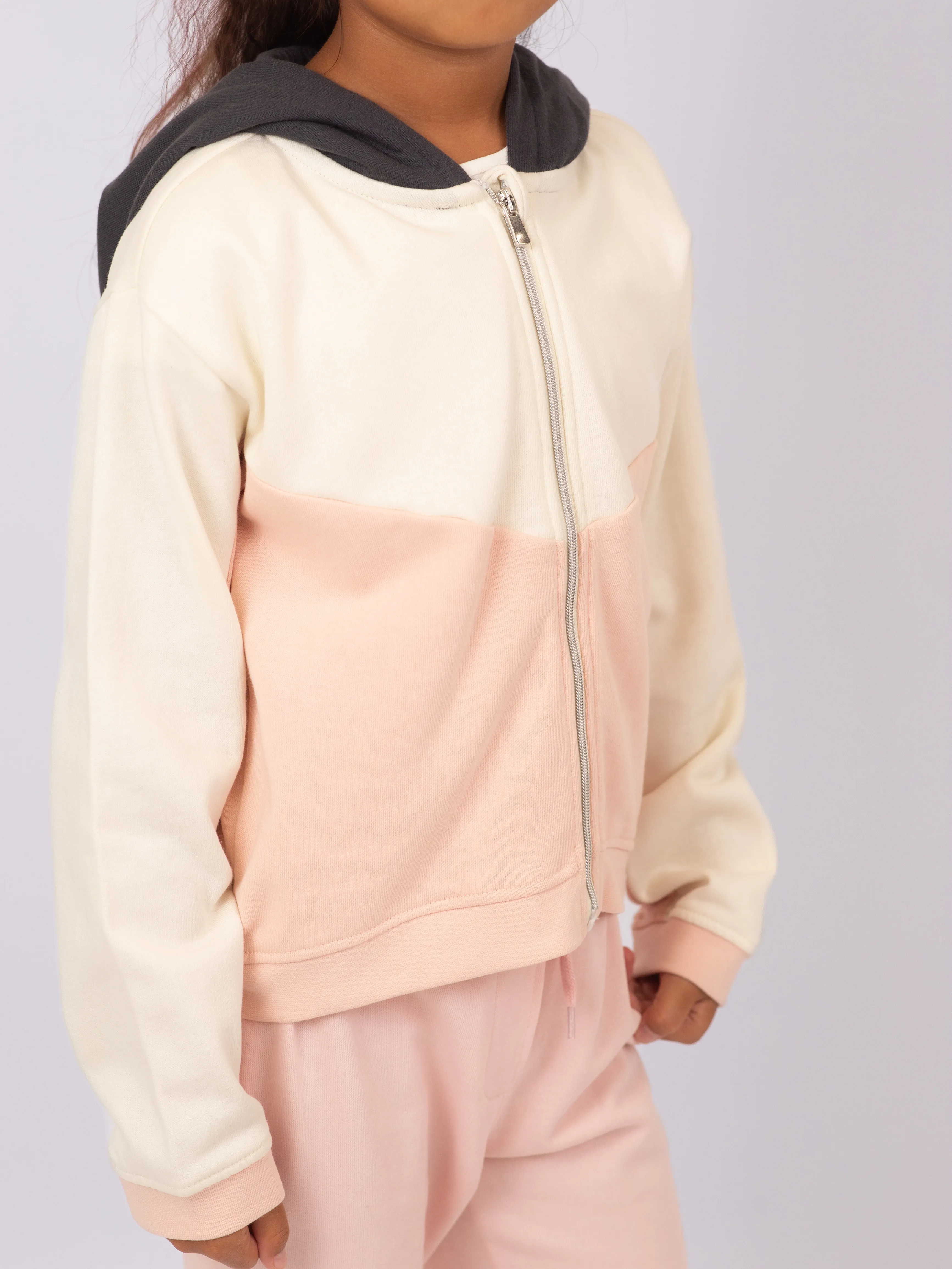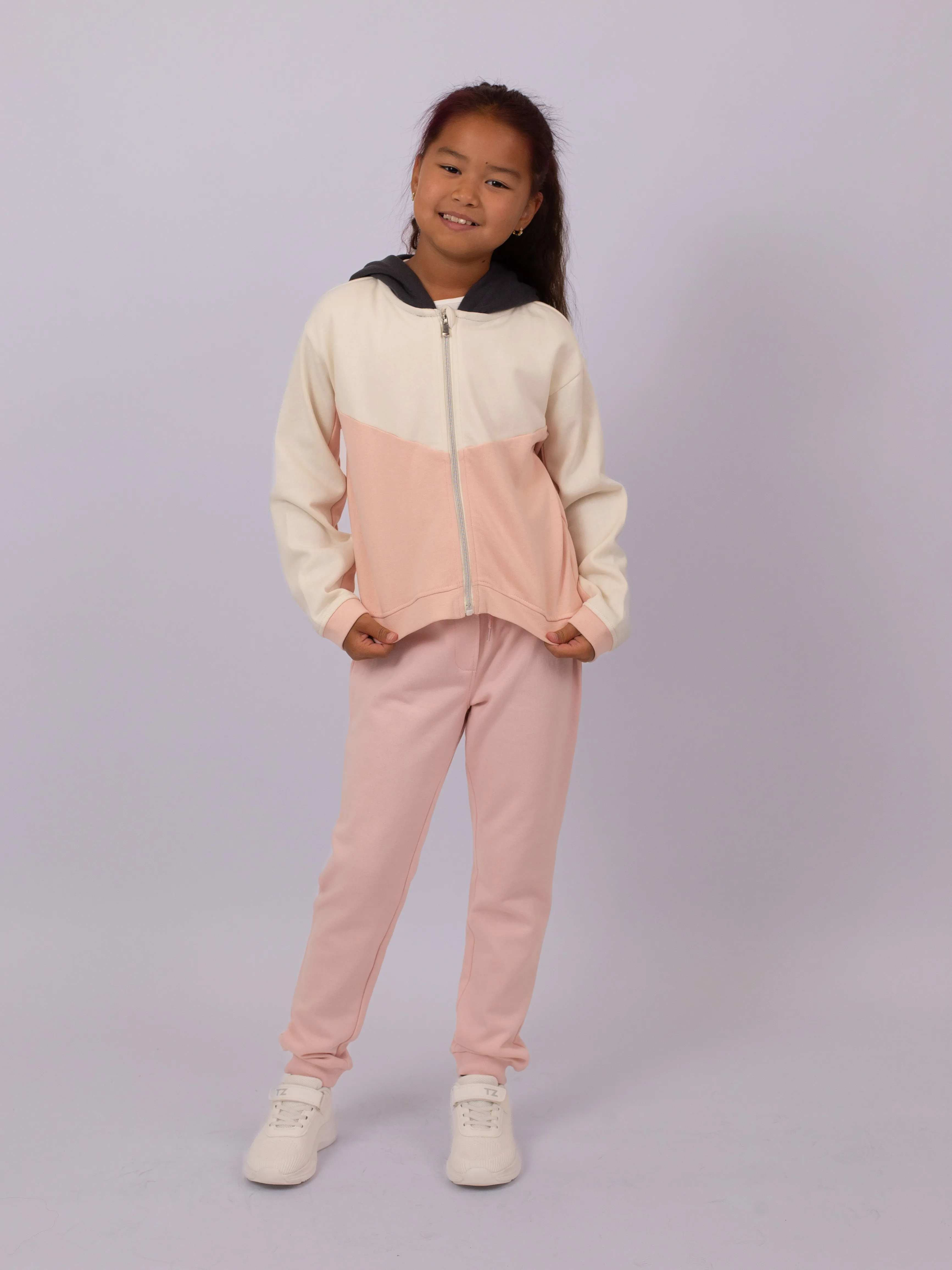 Флисовая толстовка для девочки на молнии. Внешний материал: 60% хлопок, 40% полиэстер. Подкладка капюшона выполнена из 100% хлопка — мягкая и приятная к коже. Удобна для повседневной носки, отлично сохраняет тепло и подходит для прохладной погоды.