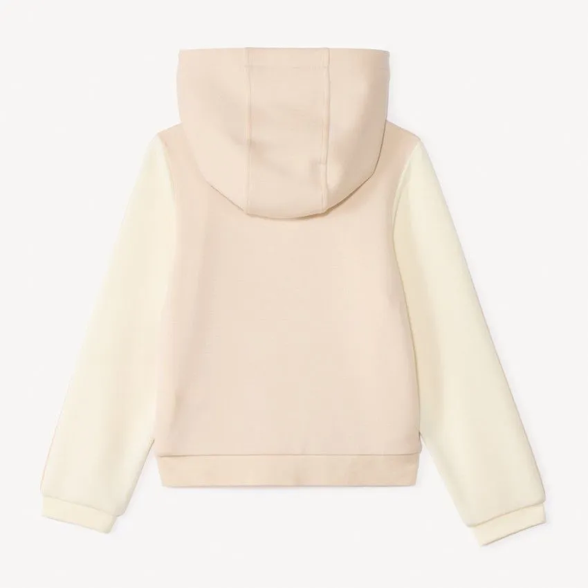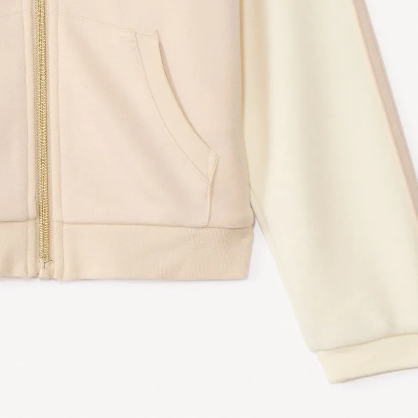 Модель дополнена капюшоном, карманом-кенгуру и манжетами на рукавах, а застёжка на молнии делает толстовку практичной и удобной для быстрого надевания.