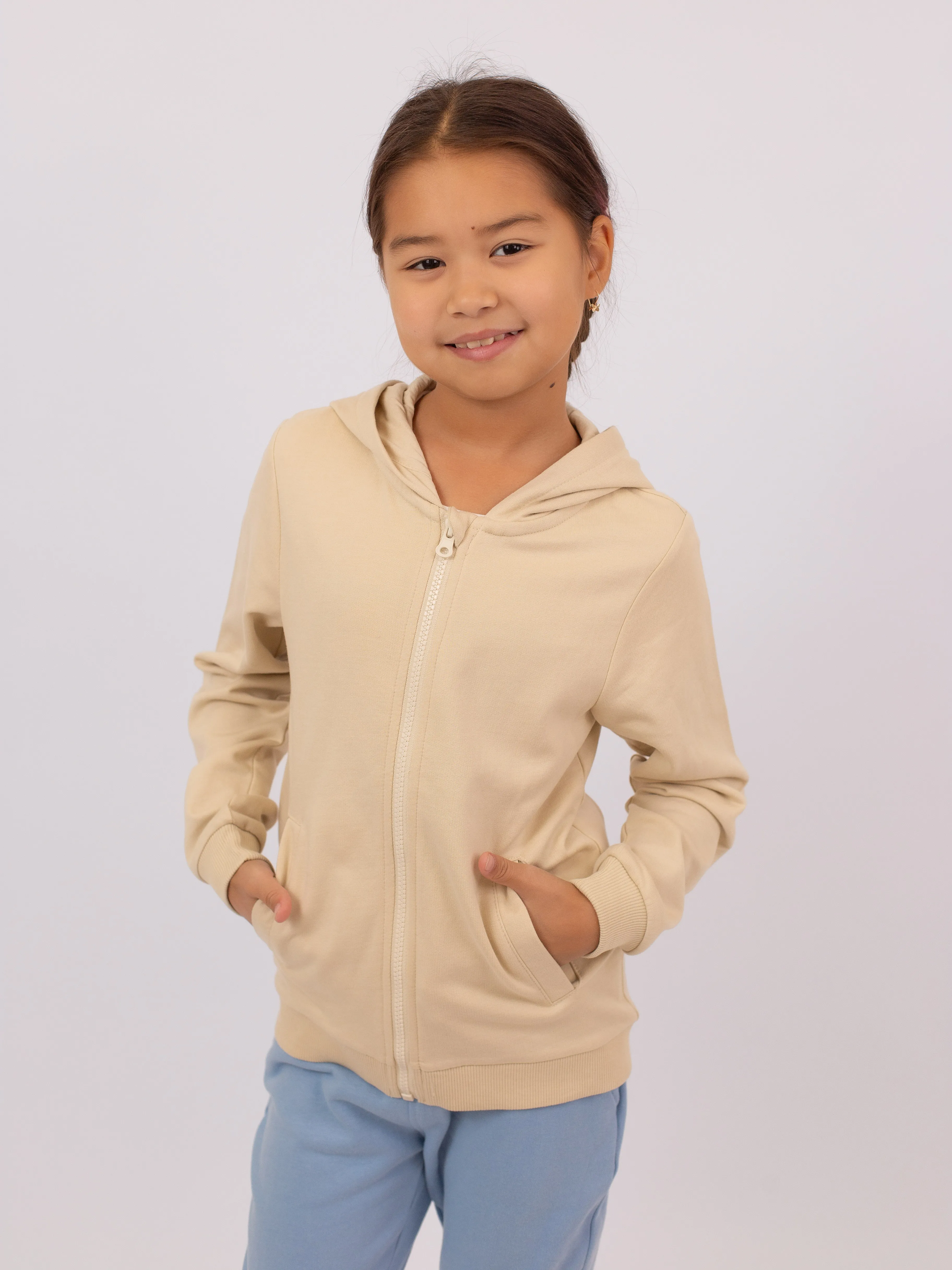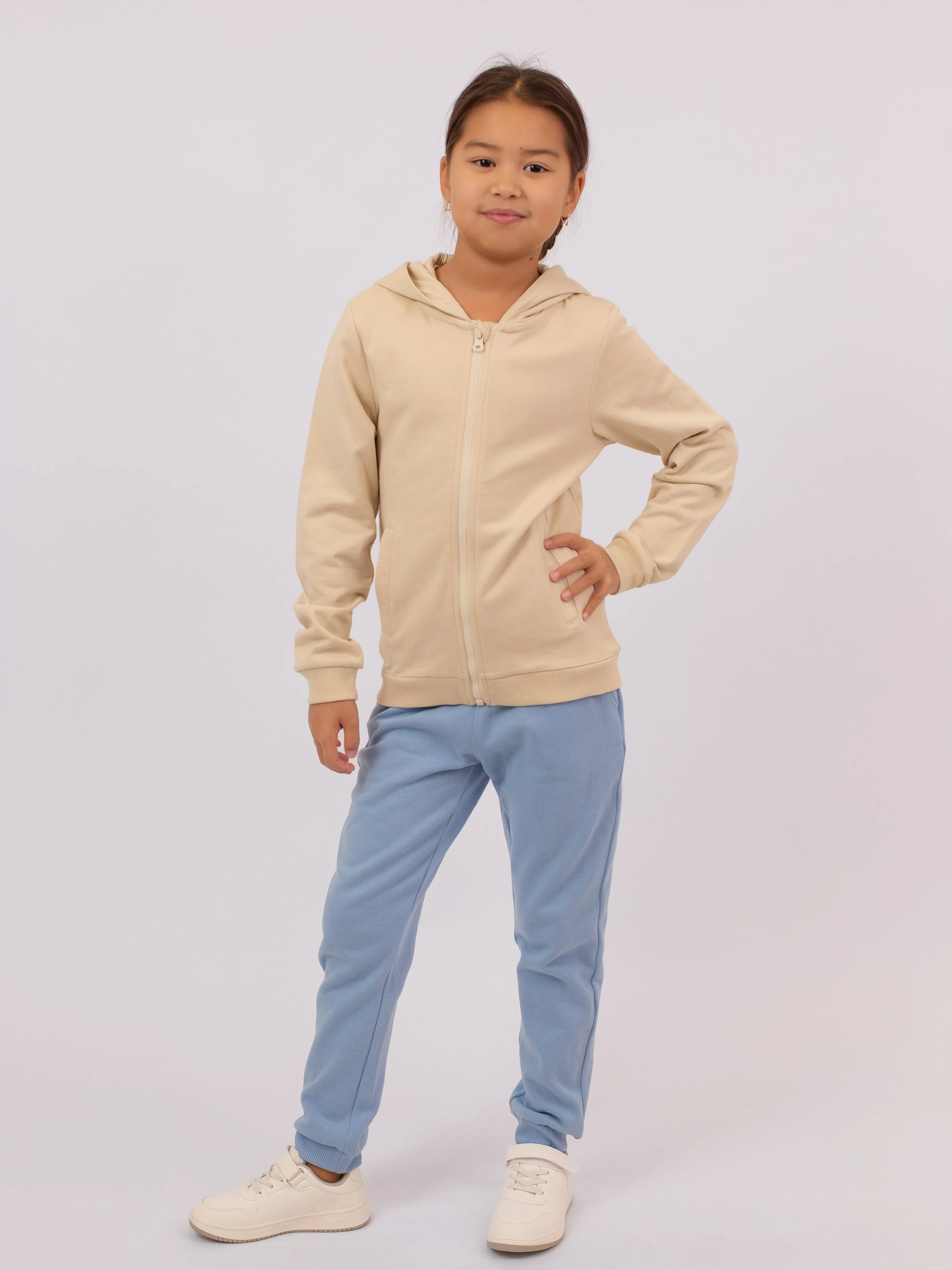 Толстовка оснащена удобным капюшоном и эластичными манжетами, обеспечивающими комфортную посадку. Идеально подойдёт для прогулок, детского сада или активного отдыха.
