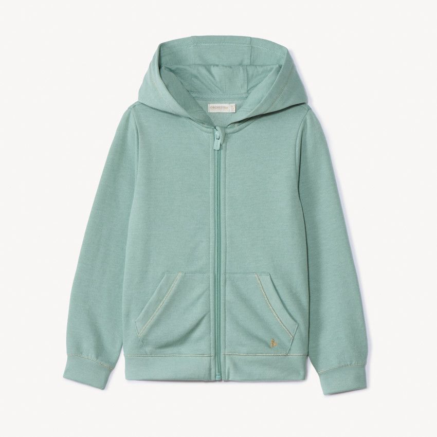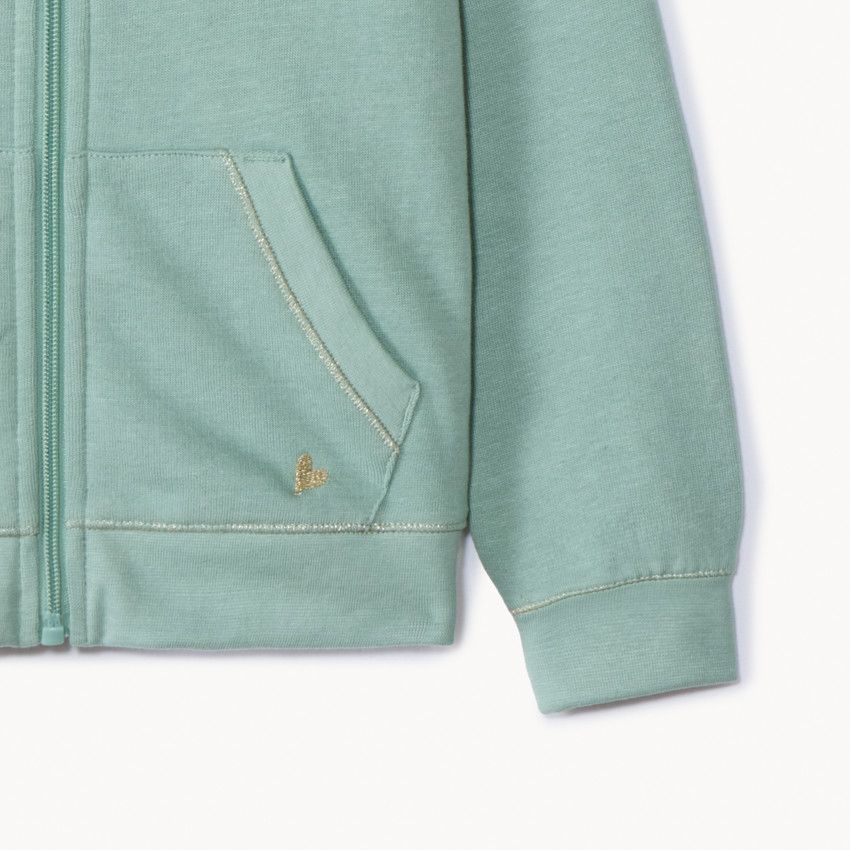 Толстовка оснащена удобными карманами "кенгуру" и украшена декоративной золотистой окантовкой. Спереди — очаровательное сердечко с вышивкой из золотого люрекса, придающее образу нежности и блеска.