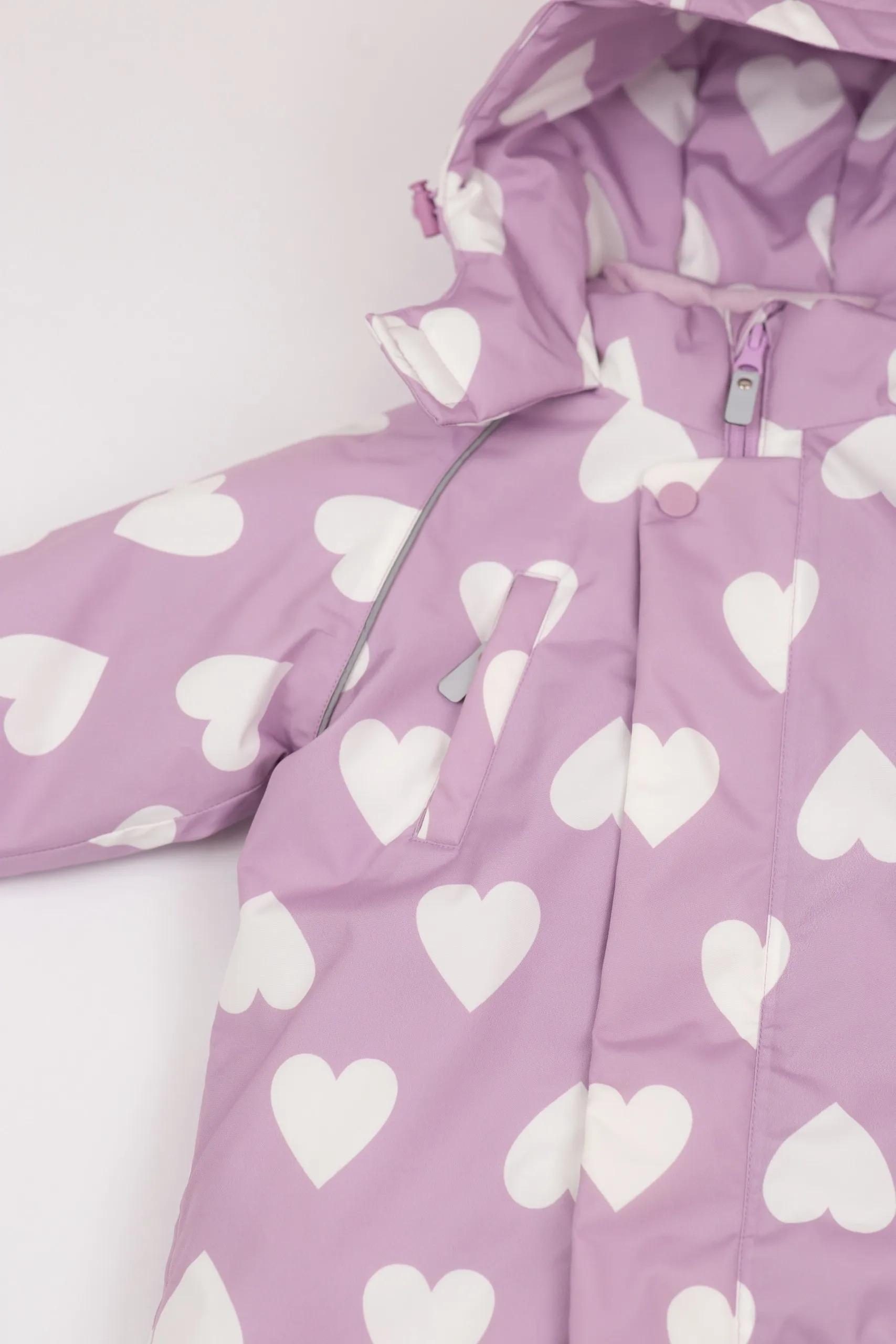 •  Капюшон с утяжкой, двойная горловина и эластичные манжеты защищают от ветра и снега. Светоотражающие элементы повышают безопасность.