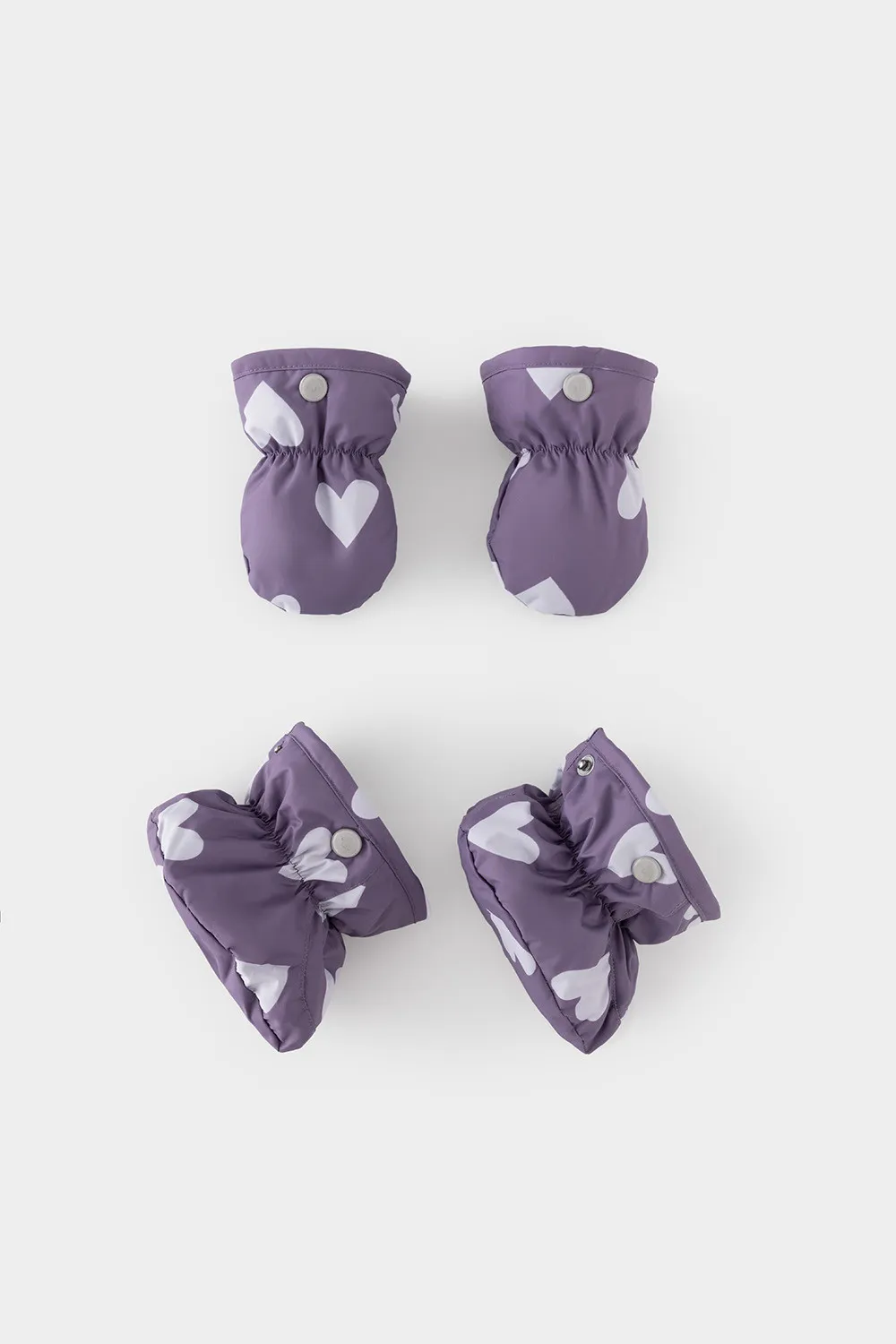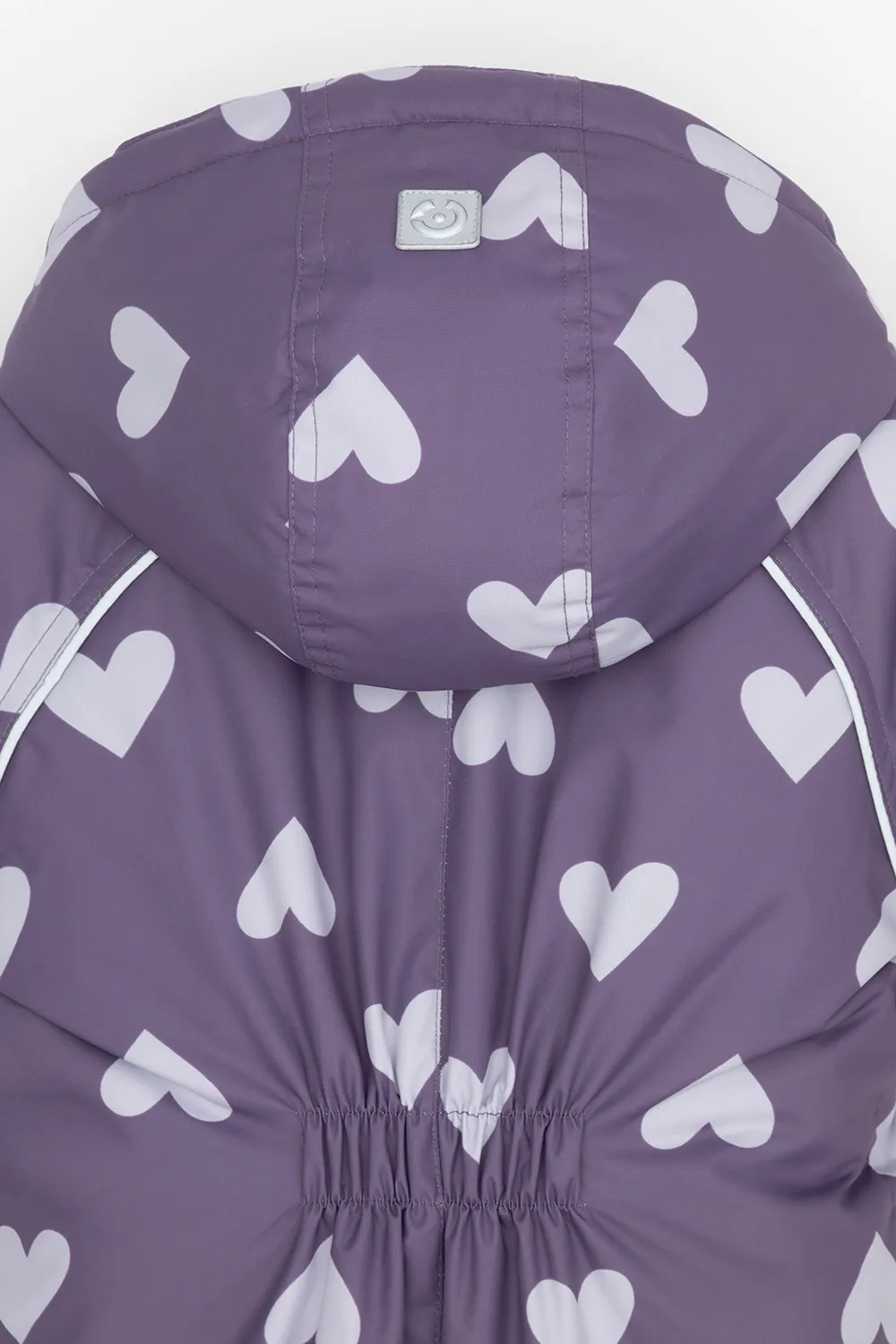 Практичные детали: один карман на молнии, светоотражающие элементы для безопасности и внутренняя этикетка с местом для имени. В размерах 68–74, 74–80 и 80–86 в комплект входят пристёгивающиеся утеплённые варежки и пинетки.