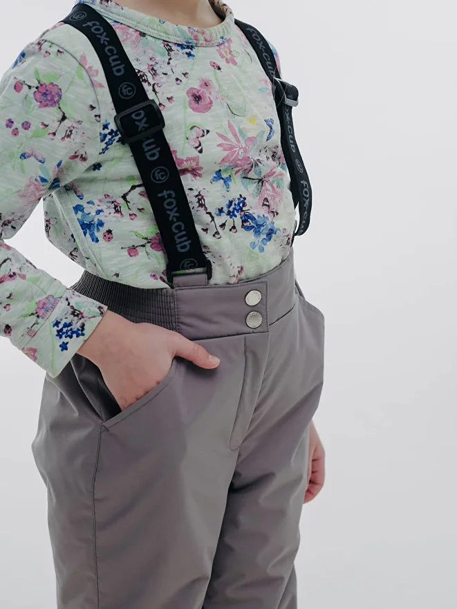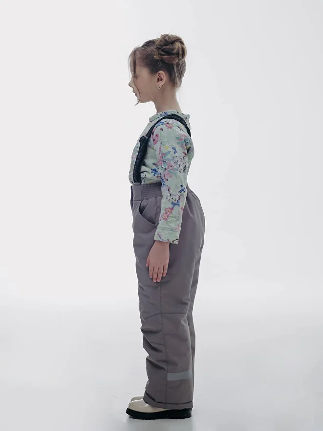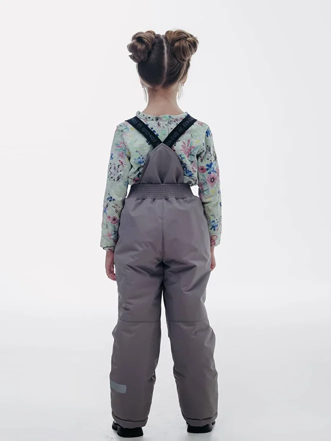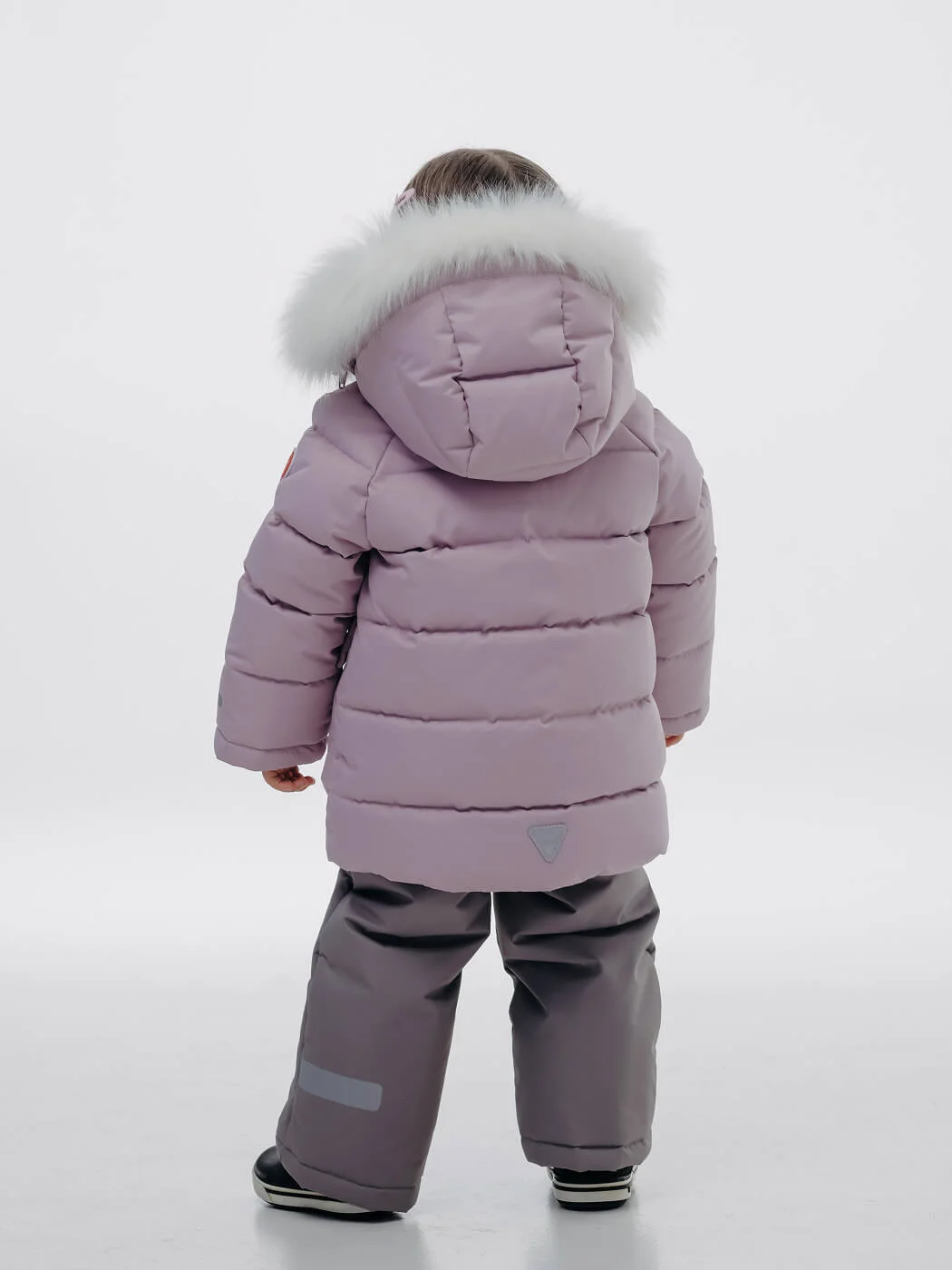 Зимний комплект для девочек куртка + полукомбинезон. Верхняя ткань куртки — полиэстер с мембраной 3K/3K и DWR-защитой, утеплитель: эко-пух, холофайбер, подкладка — хлопок, полиэстер. Утепление полукомбенизона холофайбером.