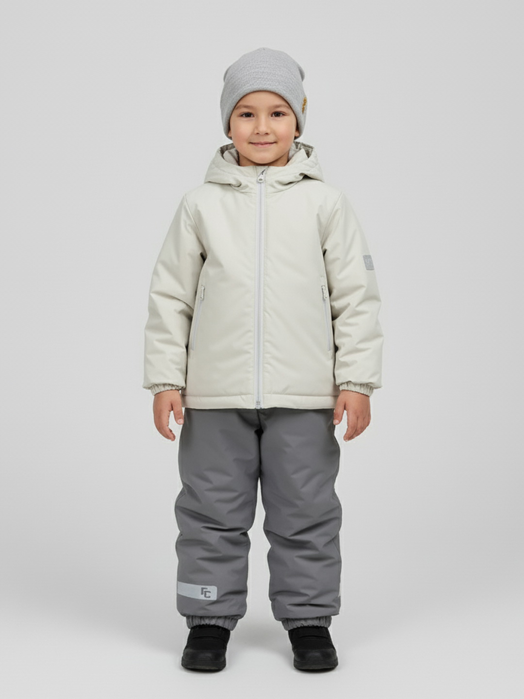 Утепление: куртка — биопух + холофайбер, брюки — холофайбер. Подкладка: в куртке — хлопок + полиэстер, в полукомбинезоне — 100 % полиэстер.