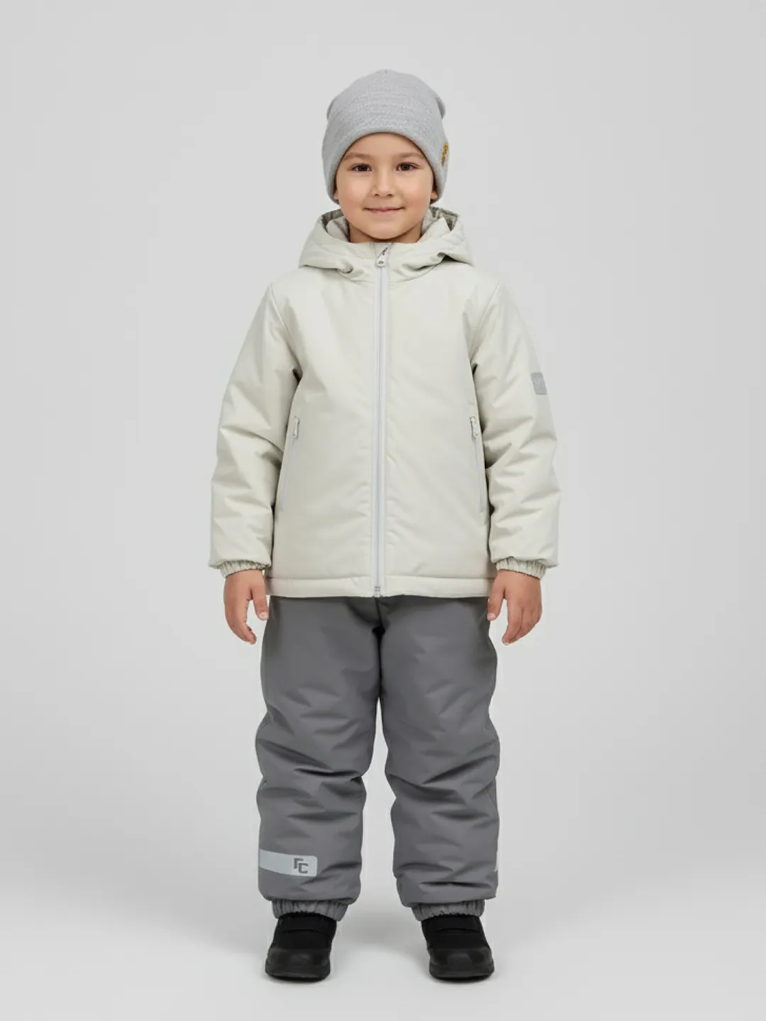 Утепление: куртка — биопух + холофайбер, брюки — холофайбер. Подкладка: в куртке — хлопок + полиэстер, в полукомбинезоне — 100 % полиэстер.