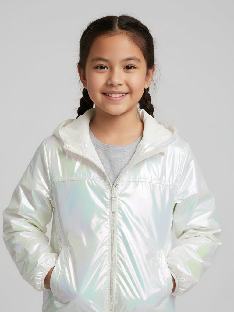 Яркая ветровка с переливающимся эффектом станет стильным дополнением к детскому гардеробу. Модель выглядит модно и отлично подходит для прогулок в прохладную и ветреную погоду.