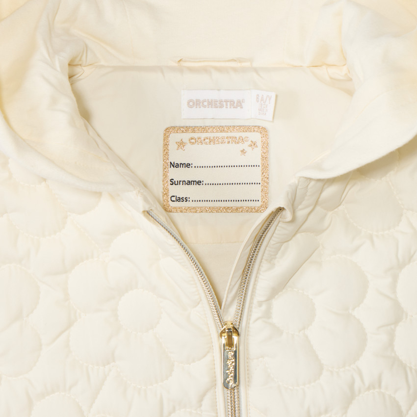 Удобный стёганый жилет ORCHESTRA — практичная модель для прохладной погоды. Нежный молочный цвет легко сочетается с разной одеждой и подходит для повседневных образов ребёнка.