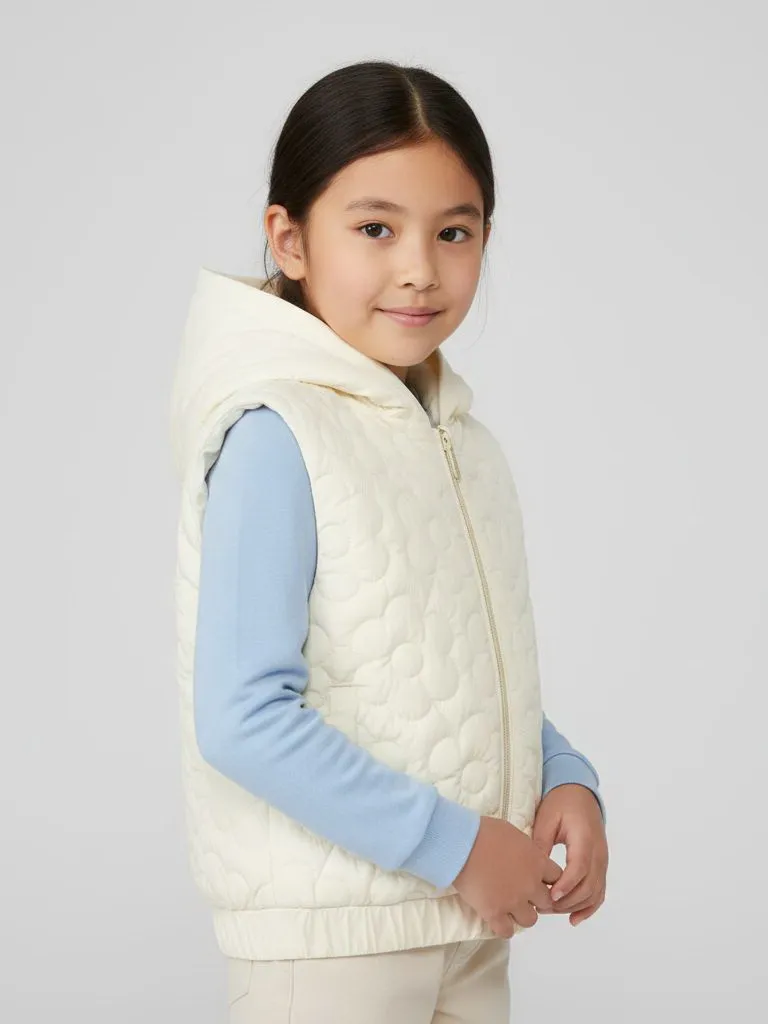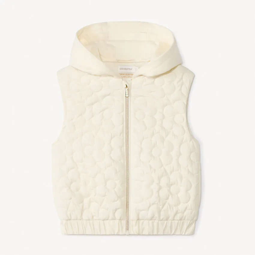 Удобный стёганый жилет ORCHESTRA — практичная модель для прохладной погоды. Нежный молочный цвет легко сочетается с разной одеждой и подходит для повседневных образов ребёнка.