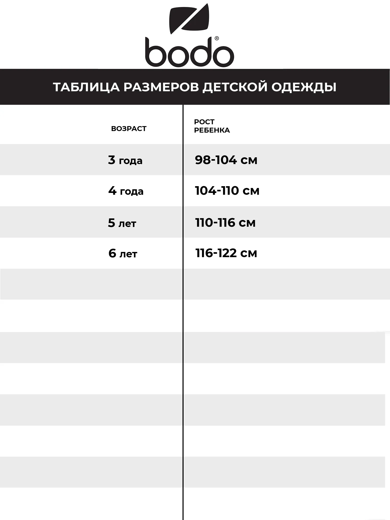 Таблица размеров