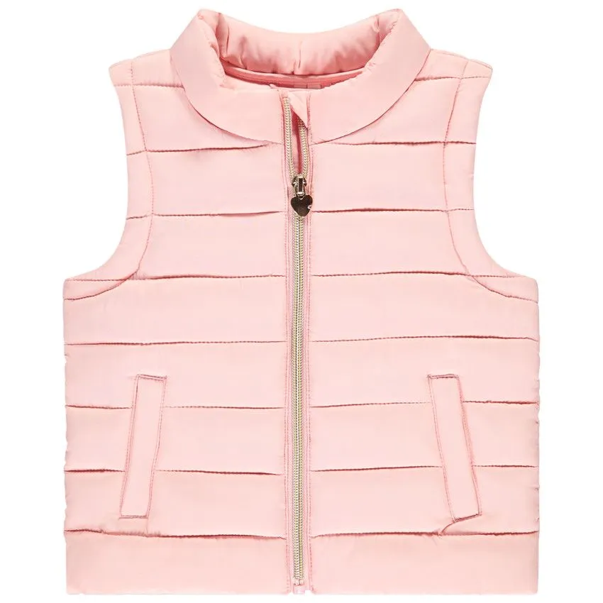 Безрукавка для девочек — стильный и удобный элемент гардероба для активных дней. Высокий воротник с застежкой-молнией по всей длине спереди не только защищает от прохлады, но и добавляет элегантности. Застежка в форме золотого сердца придает модели милый и яркий акцент, а два вертикальных прорезных кармана спереди — это не только практично, но и модно.