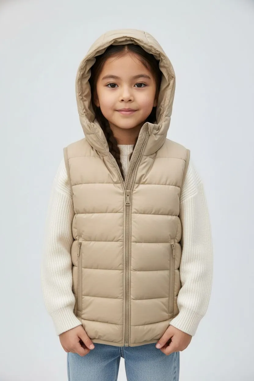 Утеплённый жилет для девочек — удобный и практичный вариант для прохладной погоды. Лёгкая стёганая модель с капюшоном хорошо сохраняет тепло и не сковывает движения ребёнка. Современный утеплитель Sorona Dupont mini ball (160 г/м²) обеспечивает мягкость, лёгкость и хорошую теплоизоляцию.