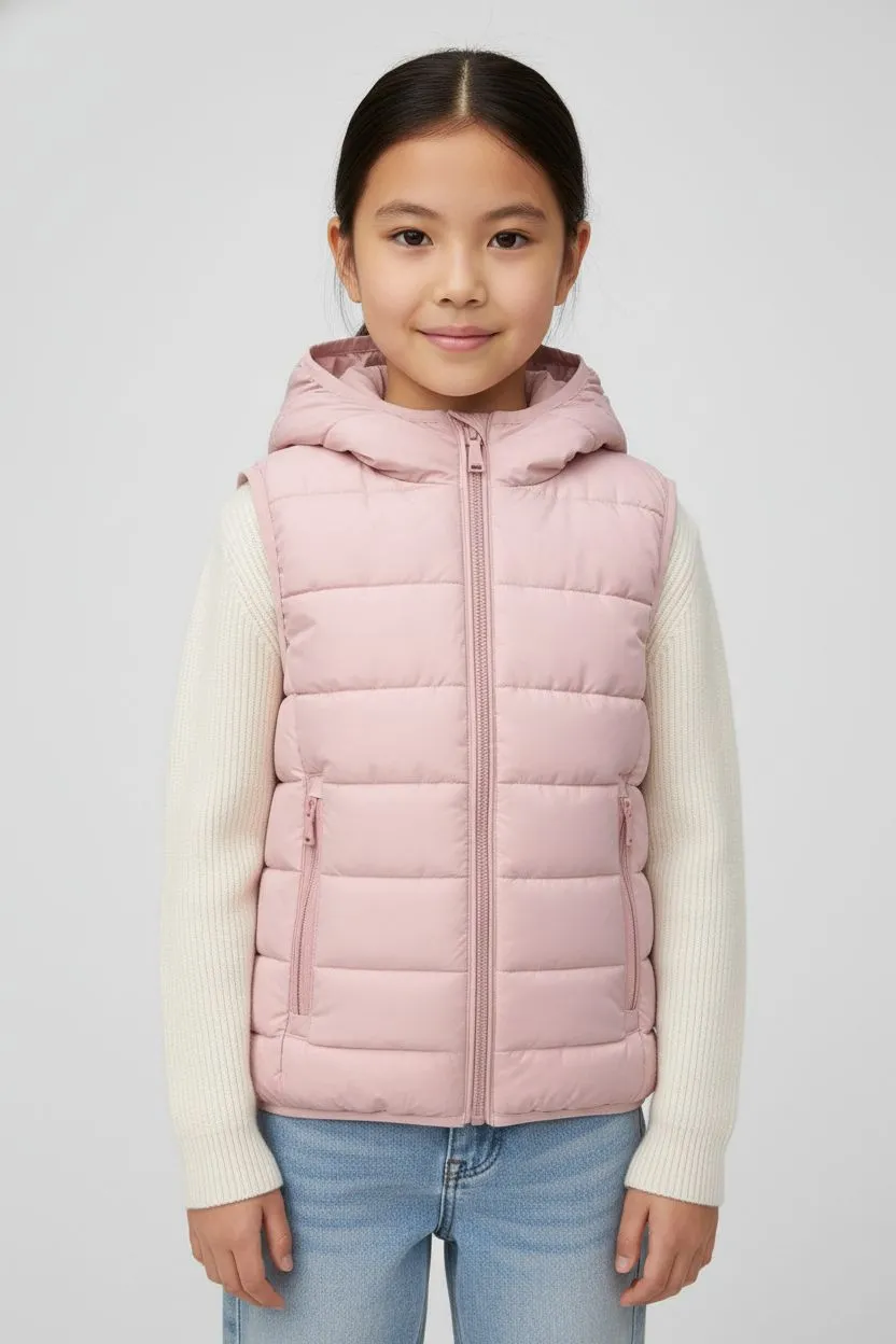 Утеплённый жилет для девочек — удобный и практичный вариант для прохладной погоды. Лёгкая стёганая модель с капюшоном хорошо сохраняет тепло и не сковывает движения ребёнка. Современный утеплитель Sorona Dupont mini ball (160 г/м²) обеспечивает мягкость, лёгкость и хорошую теплоизоляцию.