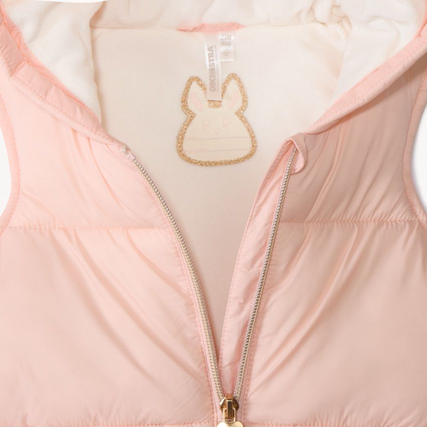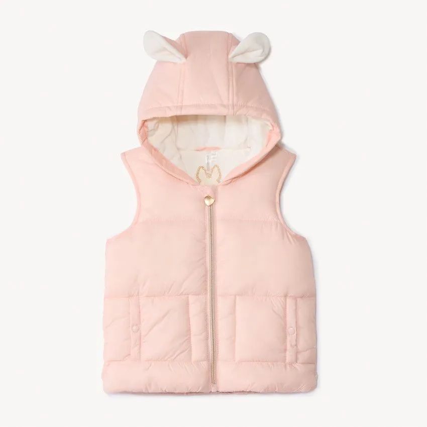 Тёплый и уютный жилет для малышки с забавными ушками на капюшоне, придающими образу игривость и оригинальность. Внешний материал выполнен из прочного 100% полиамида, а контрастная подкладка из мягкого микрофлиса (100% полиэстер) обеспечивает дополнительное тепло.
