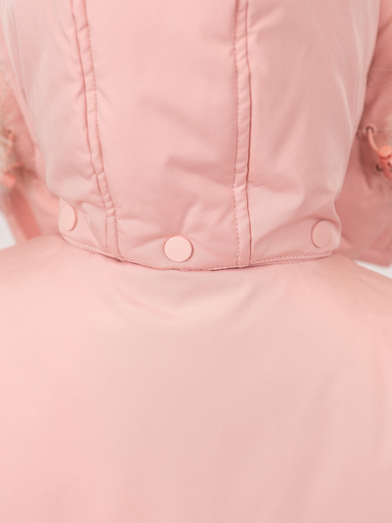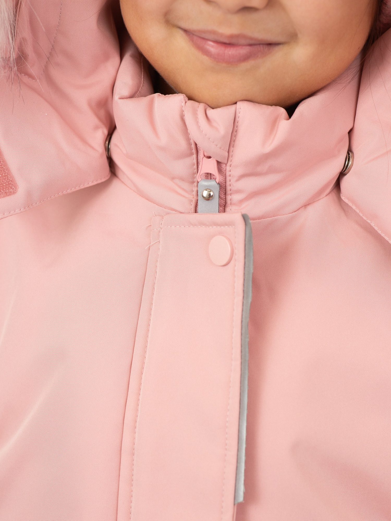 • Безопасный капюшон со съёмным гипоаллергенным мехом и эластичной утяжкой надёжно защищает от ветра и осадков