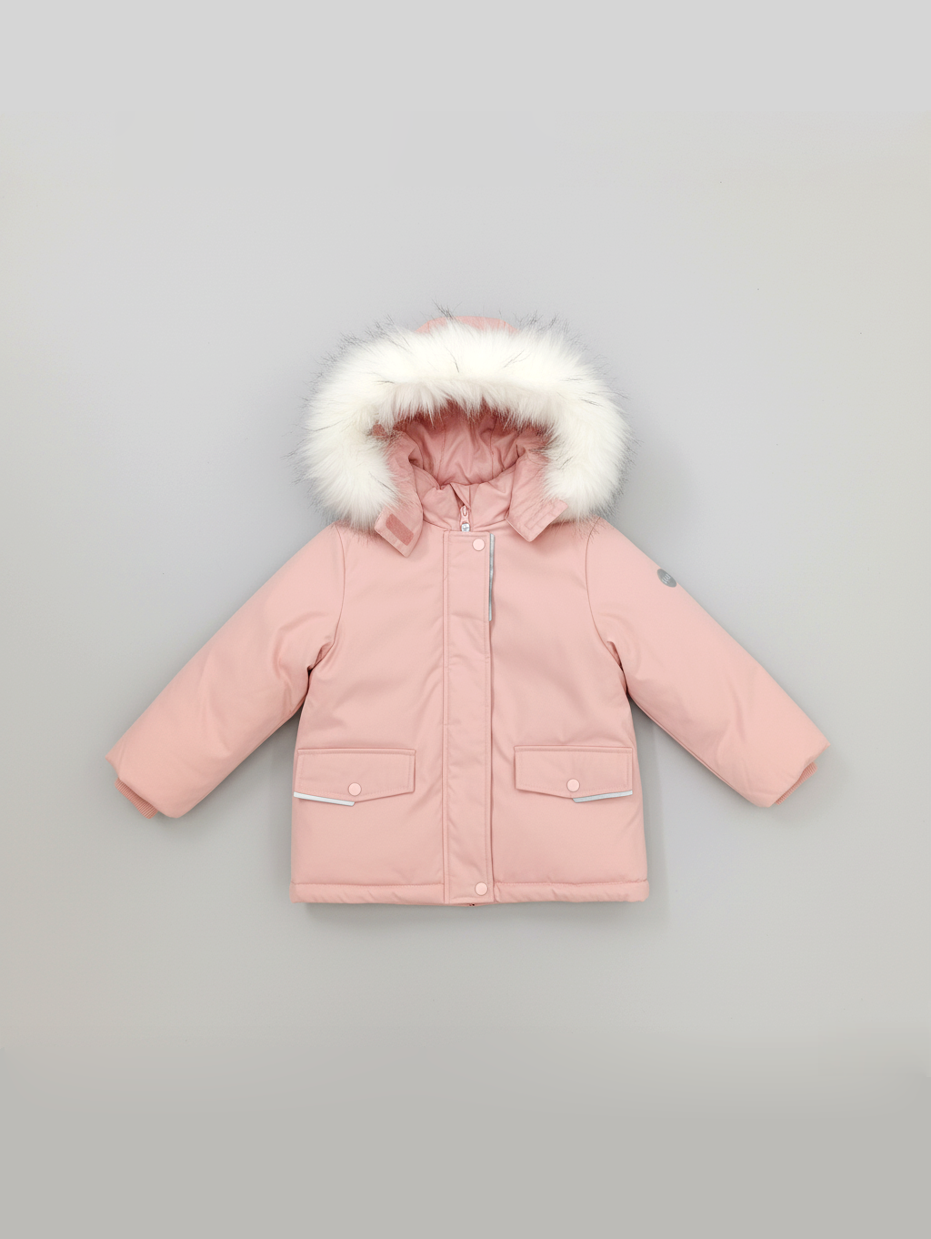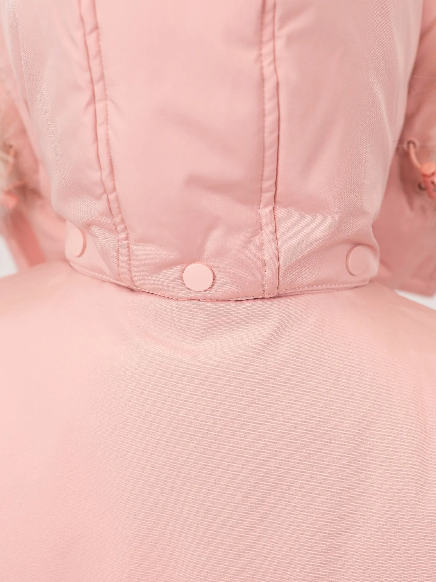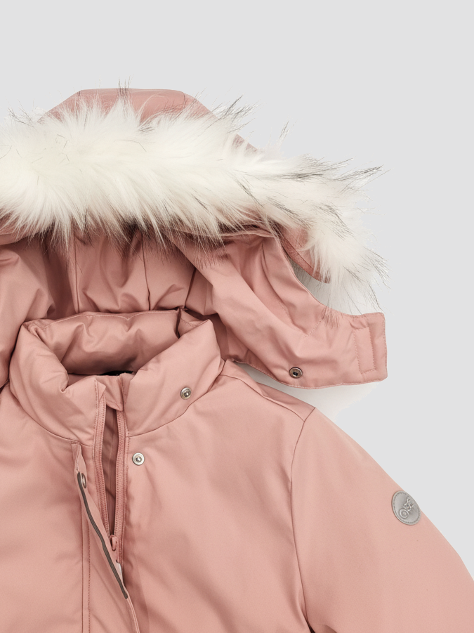 • Безопасный капюшон со съёмным гипоаллергенным мехом и эластичной утяжкой надёжно защищает от ветра и осадков
