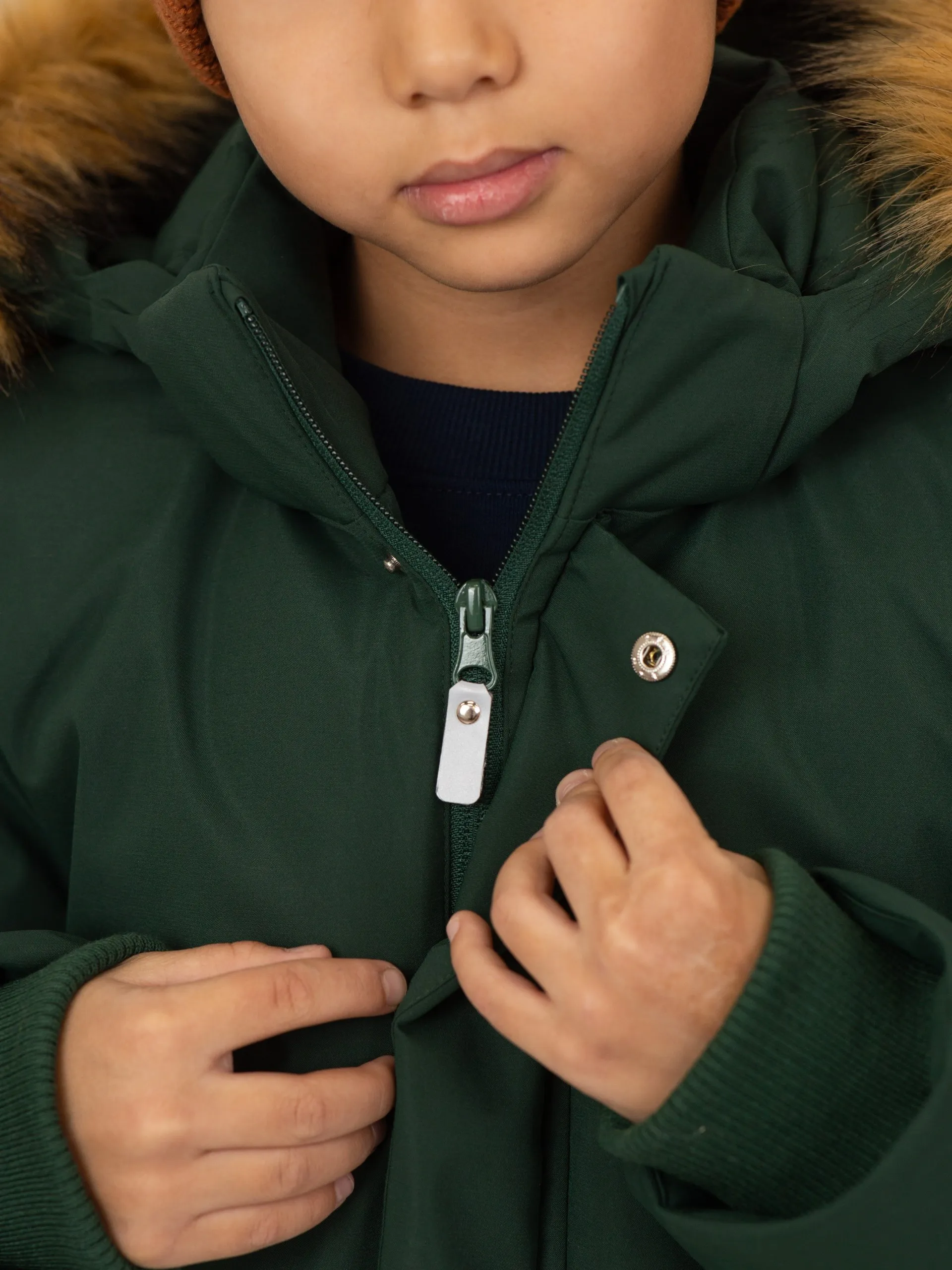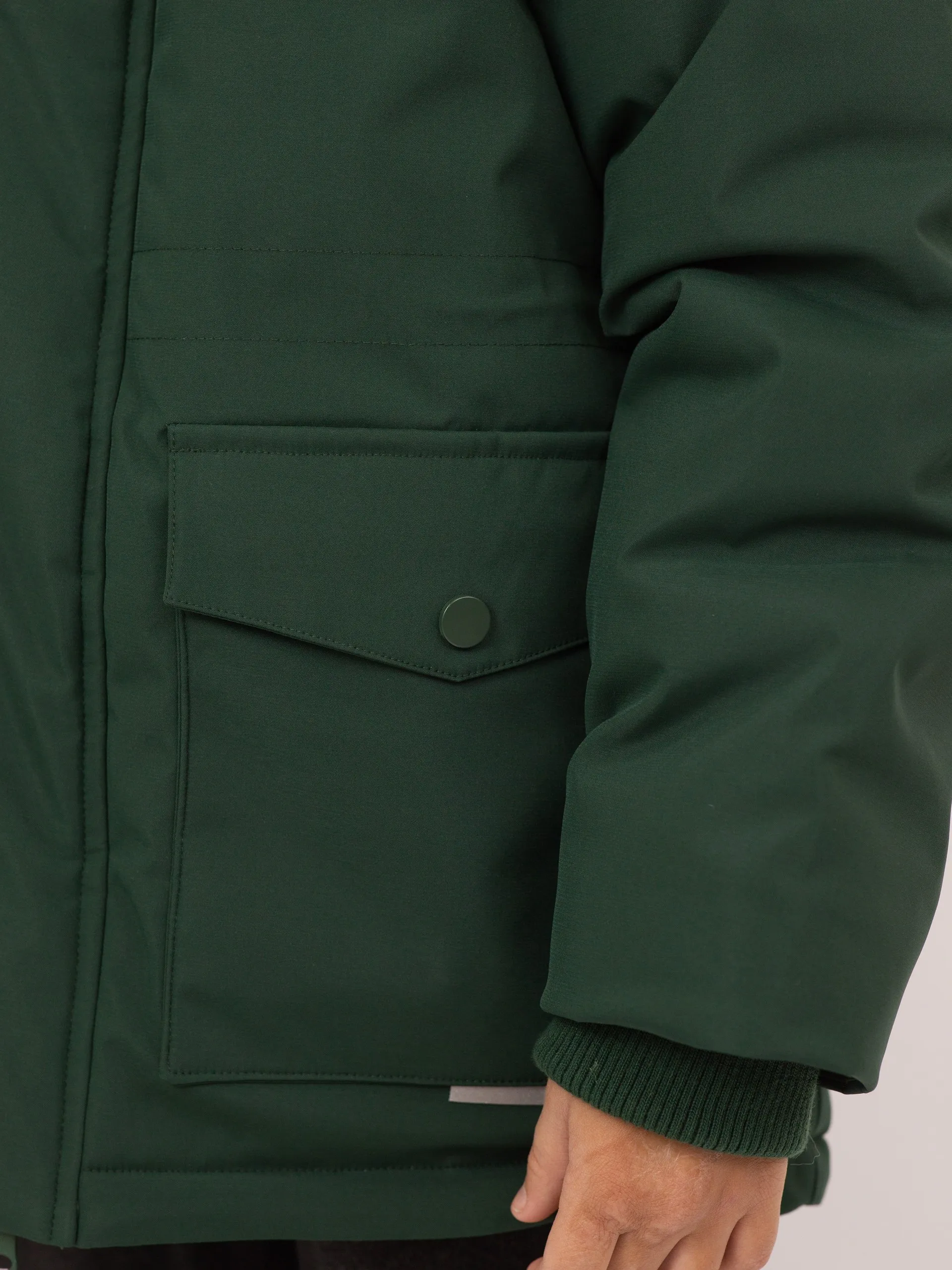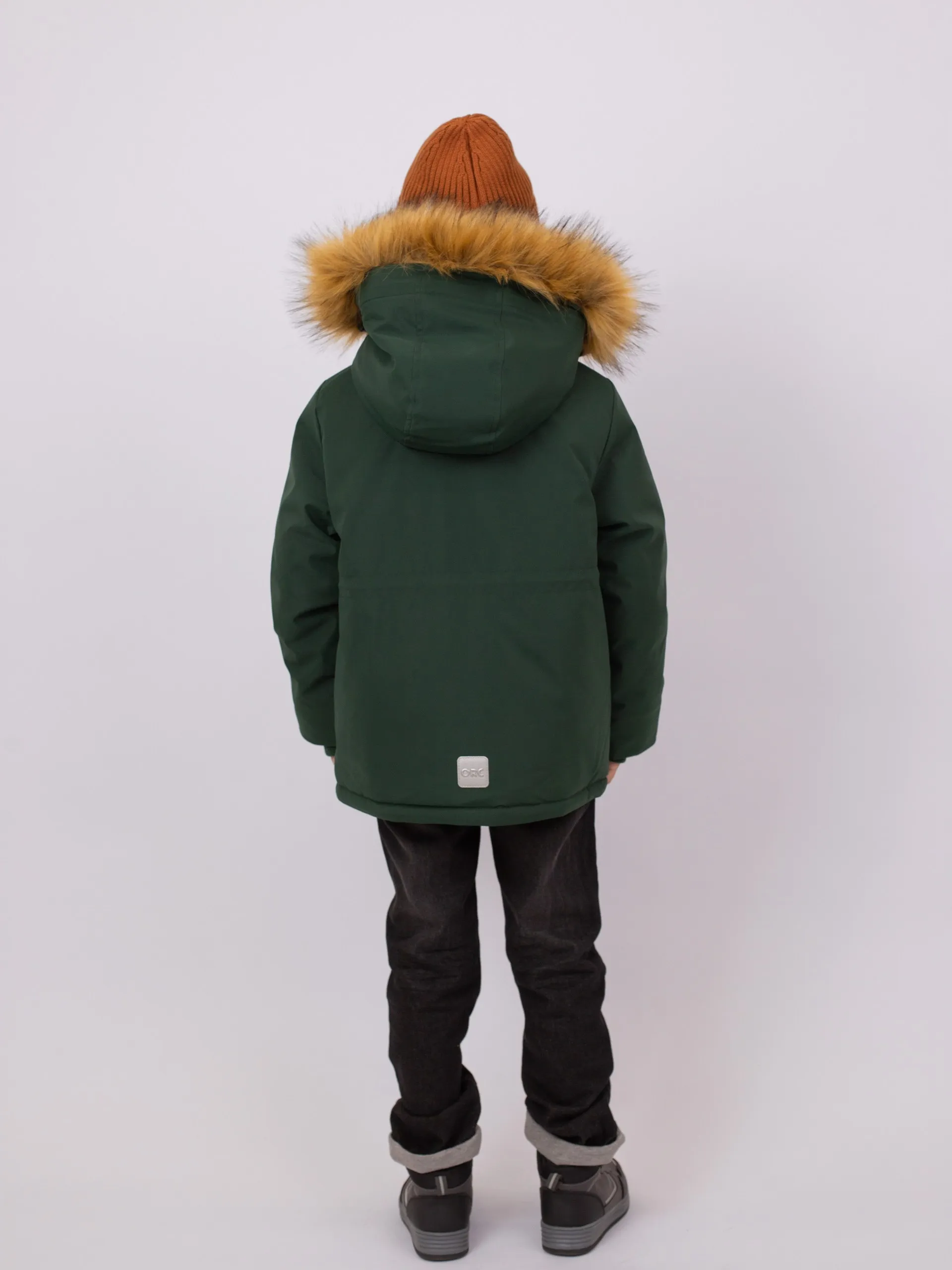 Зимняя парка для мальчика — тёплая, лёгкая и надёжная модель, созданная специально для суровой и ветреной зимы. Поверхность выполнена из водостойкой и дышащей мембраны (5000), которая предотвращает промокание и поддерживает комфортный микроклимат внутри.