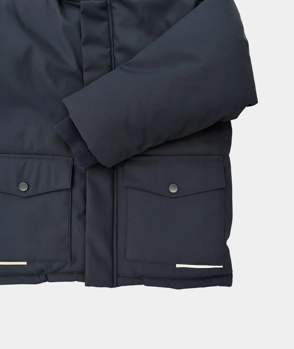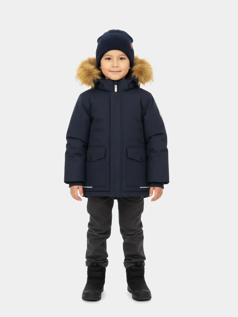 Зимняя парка для мальчиков — тёплая, лёгкая и надёжная модель, созданная специально для суровой и ветреной зимы. Поверхность выполнена из водостойкой и дышащей мембраны (5000), которая предотвращает промокание и поддерживает комфортный микроклимат внутри.