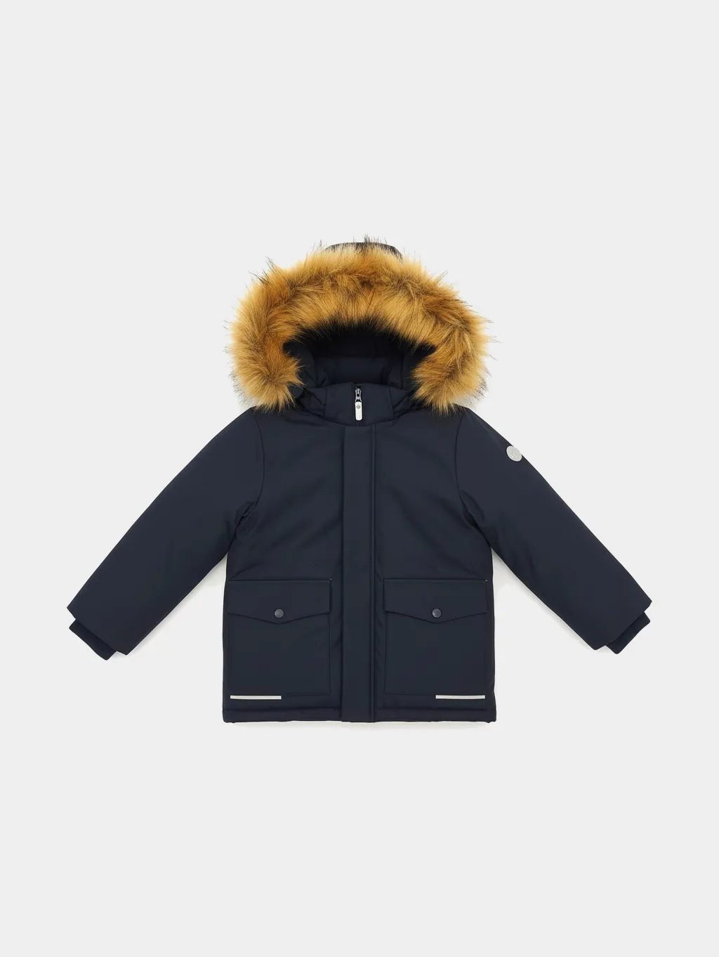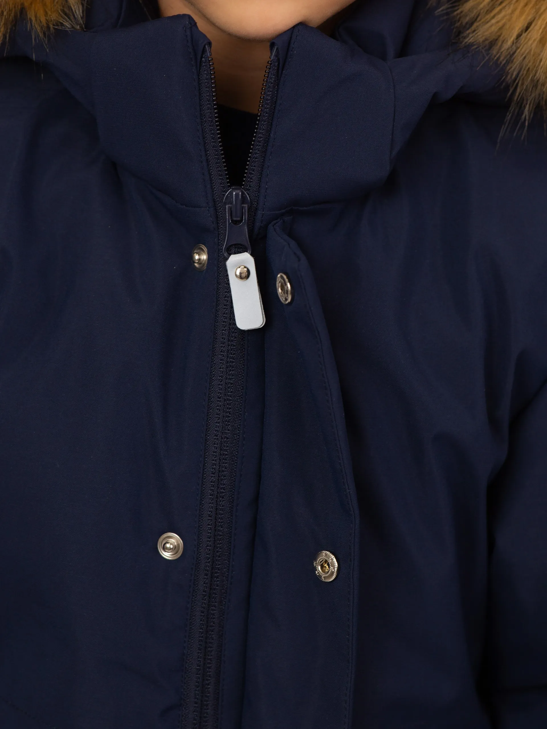• Безопасный капюшон со съёмным гипоаллергенным мехом и эластичной утяжкой надёжно защищает от ветра и осадков