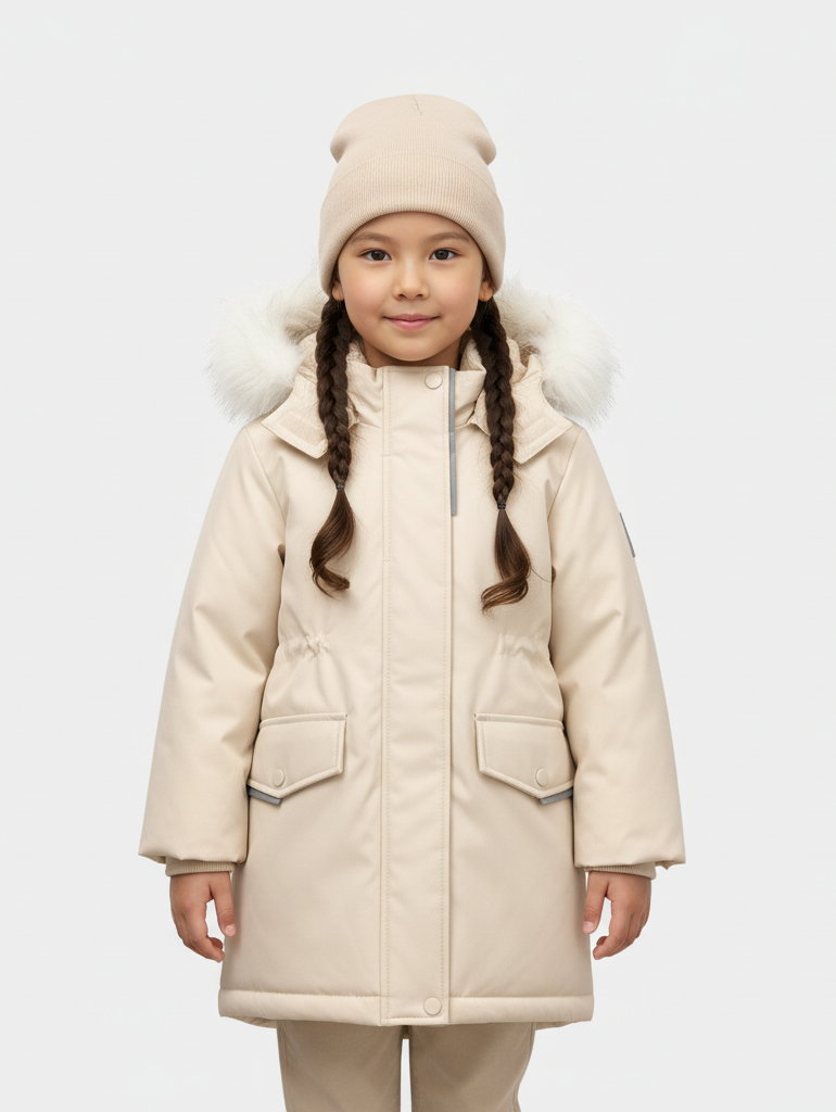 Зимняя парка для девочек — тёплая, лёгкая и надёжная модель, созданная специально для суровой и ветреной зимы. Поверхность выполнена из водостойкой и дышащей мембраны (5000), которая предотвращает промокание и поддерживает комфортный микроклимат внутри.