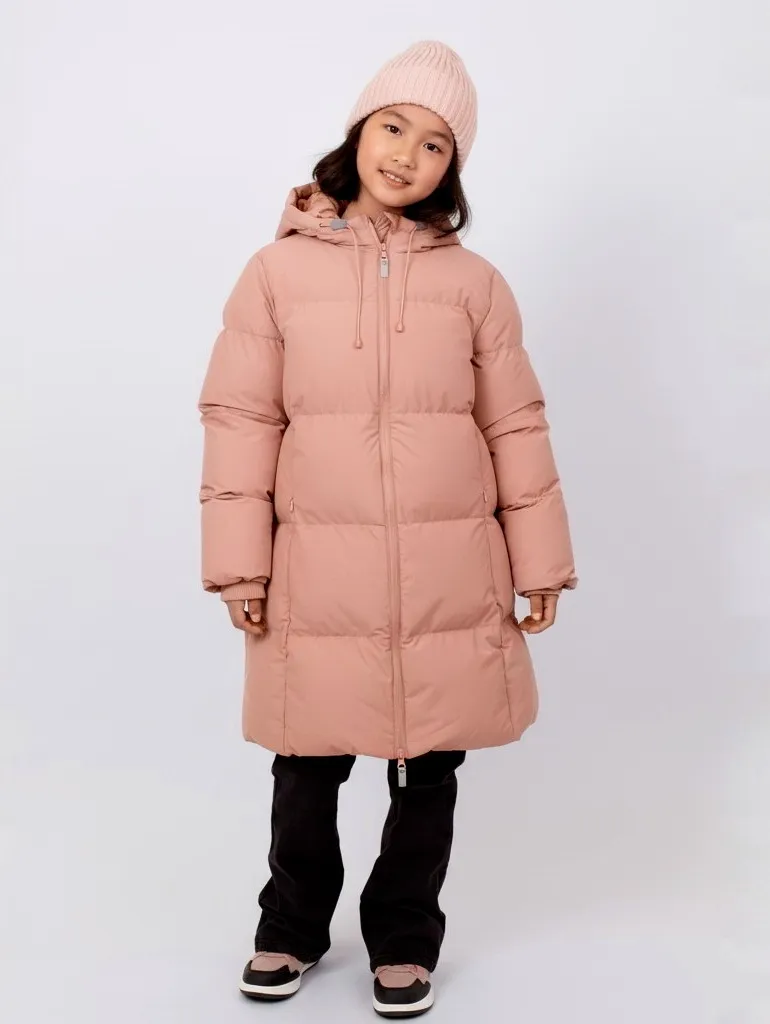 Зимний пуховик для девочек — удлинённая модель для суровой и ветреной зимы. Поверхность выполнена из водостойкой и дышащей мембраны (5000), предотвращающей промокание и обеспечивающей комфорт.