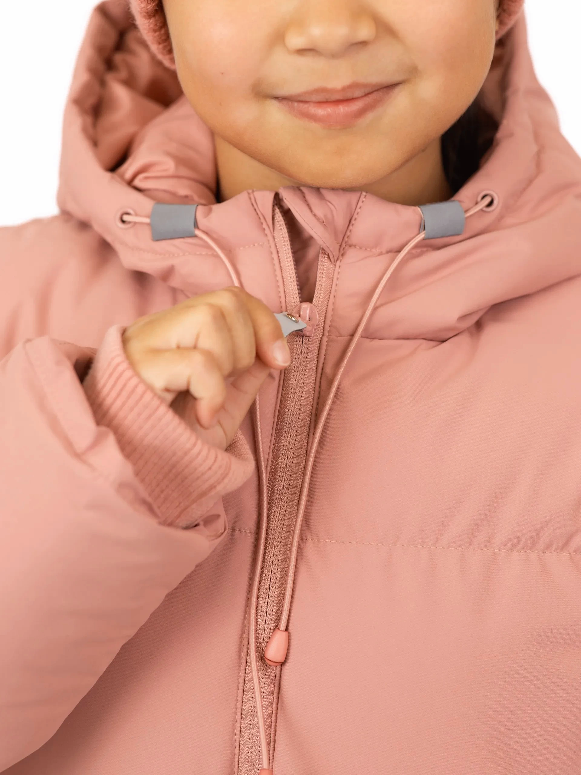 • Глубокий капюшон с утяжками надёжно закрывает от ветра