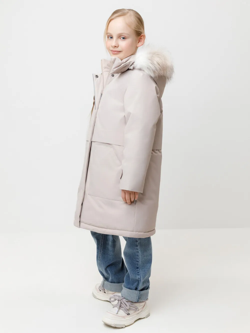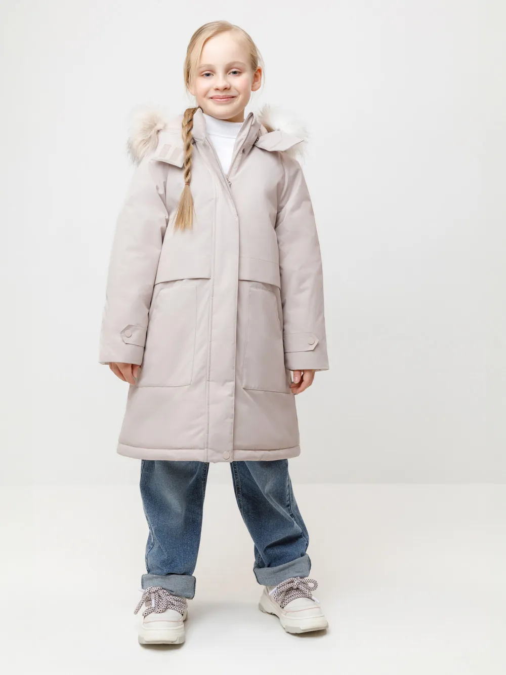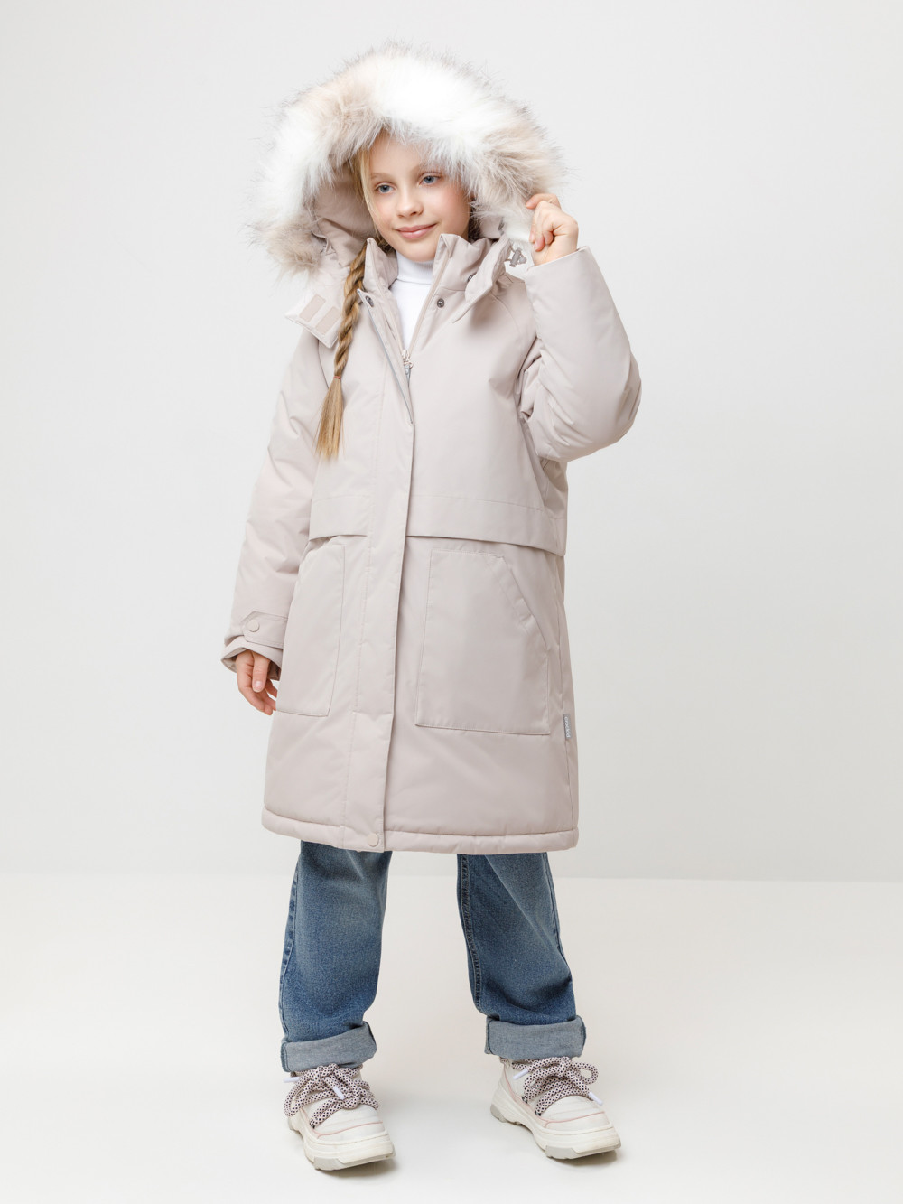 Зимняя удлинённая куртка для девочки с утеплителем SEE® плотностью 250 г/м² подарит надёжную защиту от холода и ветра. Верх выполнен из мембранной ткани с тефлоновой обработкой, которая препятствует загрязнениям и отталкивает влагу. Подкладка из 100% полиэстера Tricot обеспечивает комфорт и тепло на протяжении всего дня. Куртка застёгивается на прочную молнию с защитой подбородка. Съёмный капюшон на кнопках и липучках дополнен отстёгивающейся опушкой из искусственного меха. Мягкие манжеты на рукавах защищают от ветра и сохраняют тепло. Для удобства предусмотрены два боковых кармана с клапанами и внутренний карман на молнии. Эластичная утяжка по талии со стопперами позволяет регулировать посадку и подчёркивает силуэт. Светоотражающие элементы повышают безопасность ребёнка в тёмное время суток. Тёплая, удобная и практичная модель для активных зимних прогулок и повседневной носки. |
