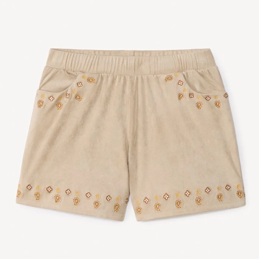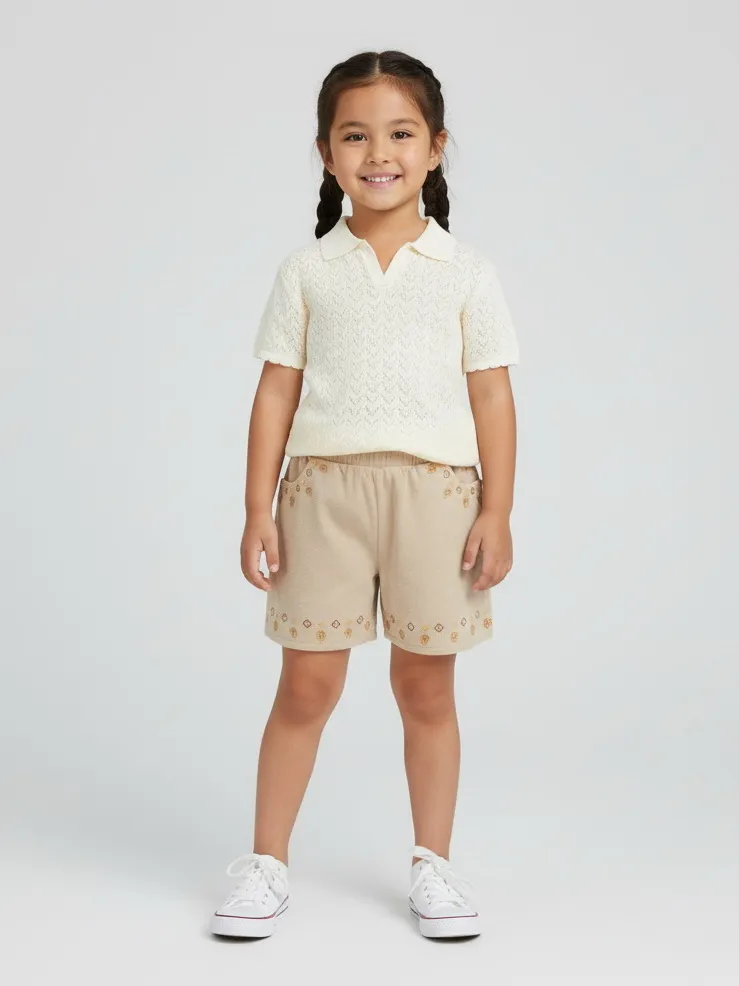 Замшевые шорты для девочки Orchestra выполнены из мягкого и приятного на ощупь материала (92% полиэстер, 8% эластан), который обеспечивает комфорт и свободу движений. Эластичный пояс со складками обеспечивает удобную посадку, а изящные вышитые узоры у карманов придают модели стильный и аккуратный вид. Отличный вариант для повседневных образов и прогулок.