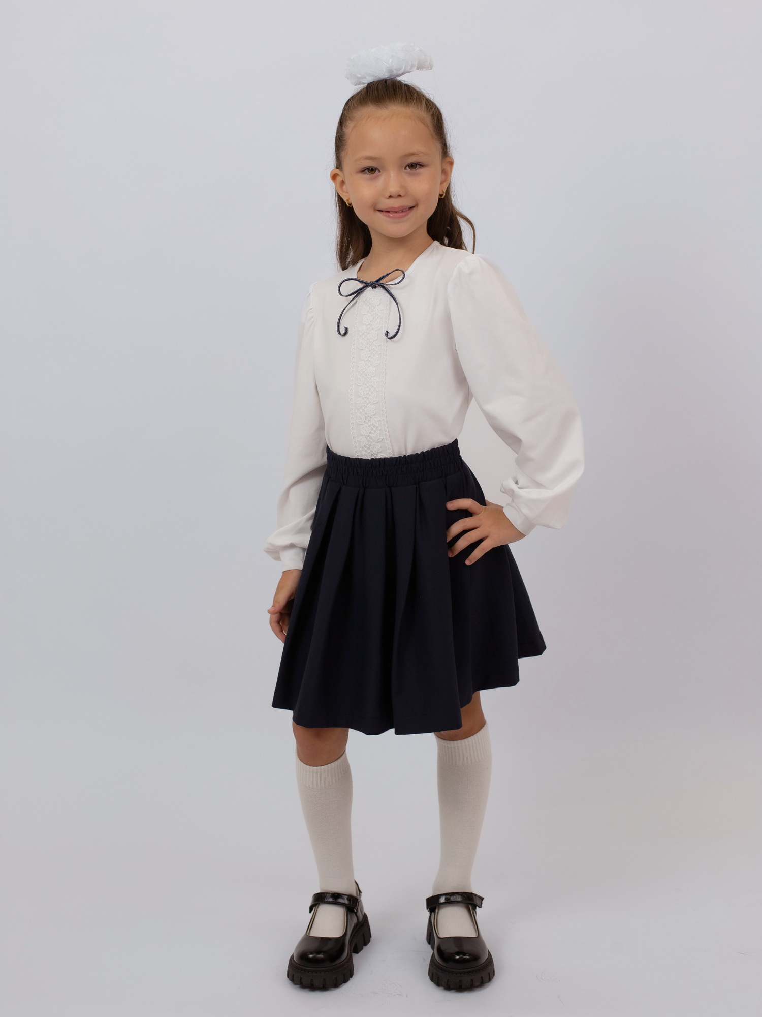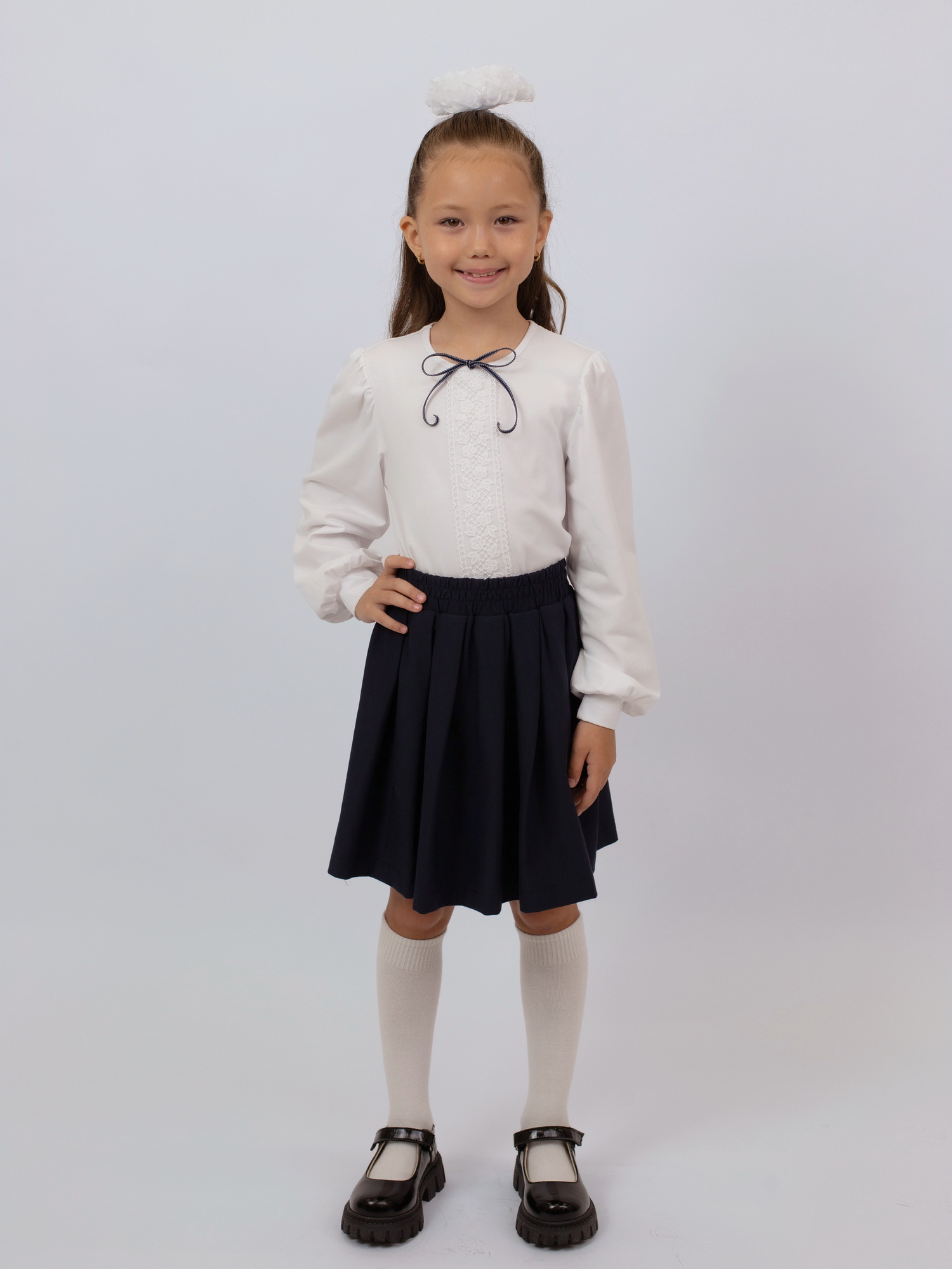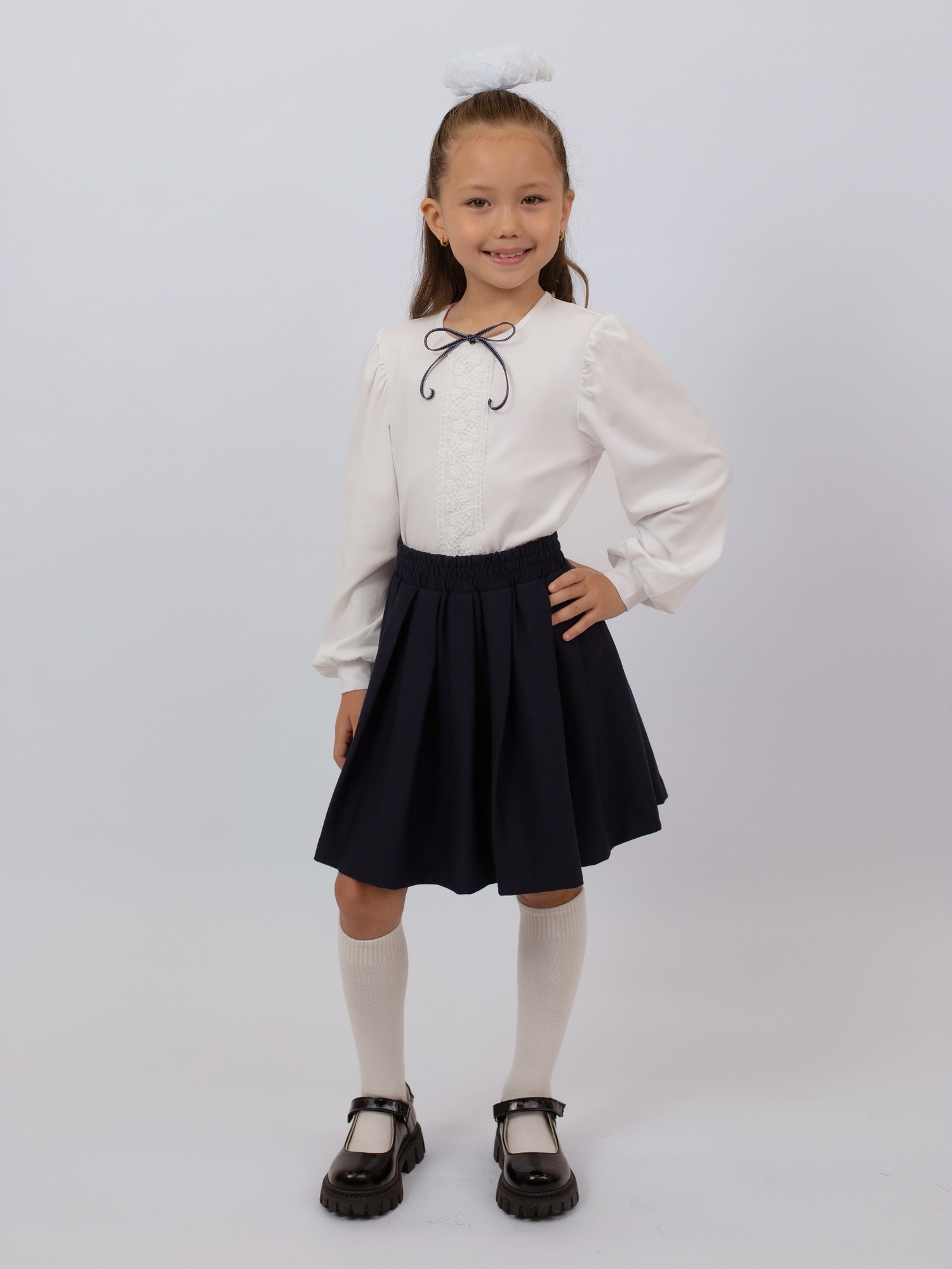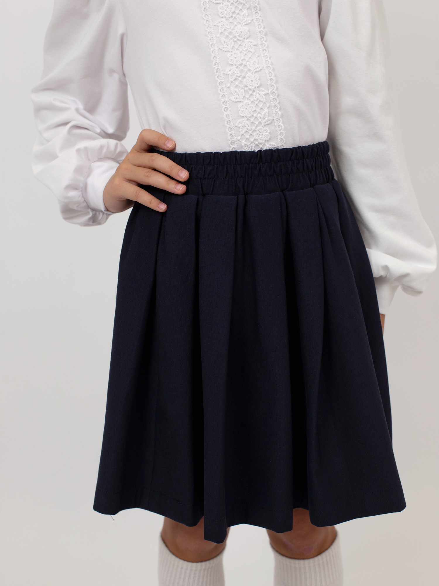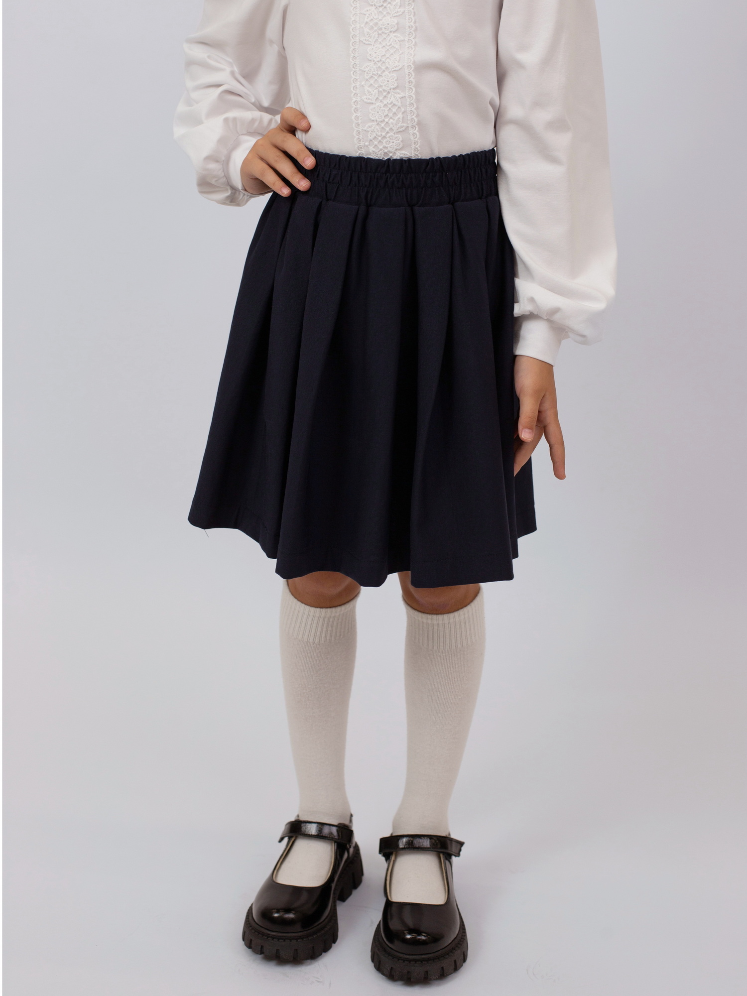 Модель дополнена широкой резинкой на поясе, что обеспечивает комфортную посадку и удобство в носке. Подходит для ежедневной школьной формы, легко сочетается с рубашками и блузками.