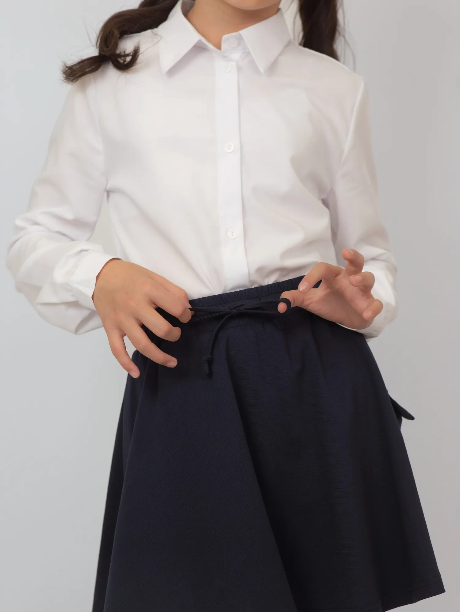 Удобная и стильная школьная юбка, выполнена из мягкой и дышащей ткани (70% хлопок, 24% полиэстер, 6% спандекс). Хлопок делает изделие приятным к телу, полиэстер добавляет прочности, а спандекс — лёгкой эластичности. Пояс на широкой резинке украшен аккуратным бантиком на шнурке, который придаёт образу нежности и девичьего шарма. Отличный выбор для повседневной школьной формы.