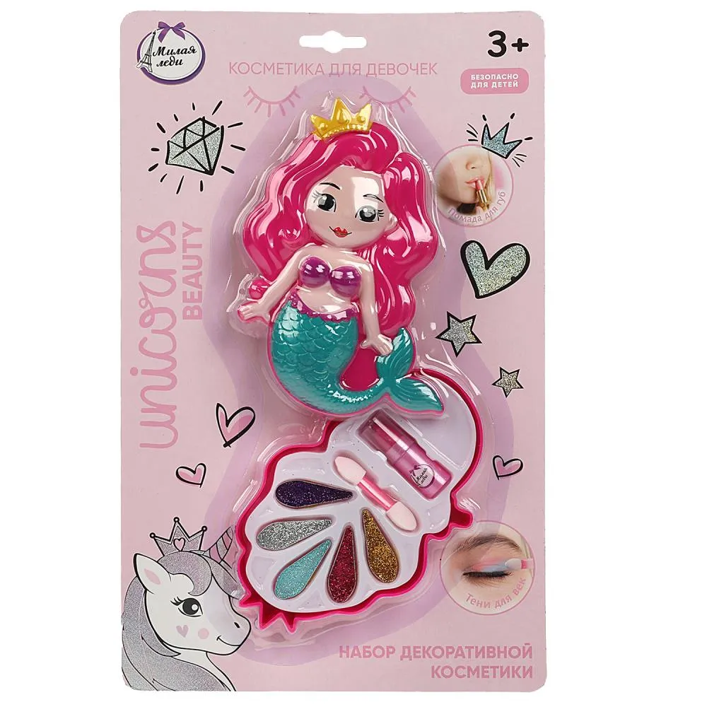 Набор косметики для девочек ТМ «Милая леди» непременно понравится маленькой моднице. В комплект входят тени для век с блёстками, помада для губ и двусторонний аппликатор для аккуратного нанесения макияжа. Все элементы собраны в складном футляре в виде русалки, который станет настоящим украшением коллекции. Косметика полностью безопасна для детей. Девочки в любом возрасте хотят быть красивыми. Специально для юных модниц был создан этот набор, который сочетает яркие тени и нежную помаду в оригинальной упаковке. Маленькая принцесса обязательно оценит красочные цвета, волшебный блеск и необычный дизайн футляра. Развивайте чувство стиля и учите девочку создавать свой неповторимый образ вместе с косметикой ТМ «Милая леди». |