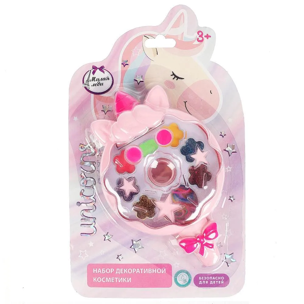 | Набор косметики для девочек ТМ «Милая леди» непременно понравится маленькой моднице. В комплект входят тени для век трёх оттенков — красного, жёлтого и зелёного, а также тени с блёстками четырёх ярких цветов — золотого, фиолетового, красного и синего. В наборе есть помада нежного розового оттенка и аппликатор для удобного нанесения макияжа. Все элементы собраны в складном футляре оригинальной формы — в виде единорога. Косметика безопасна для детей и одобрена дерматологами. |