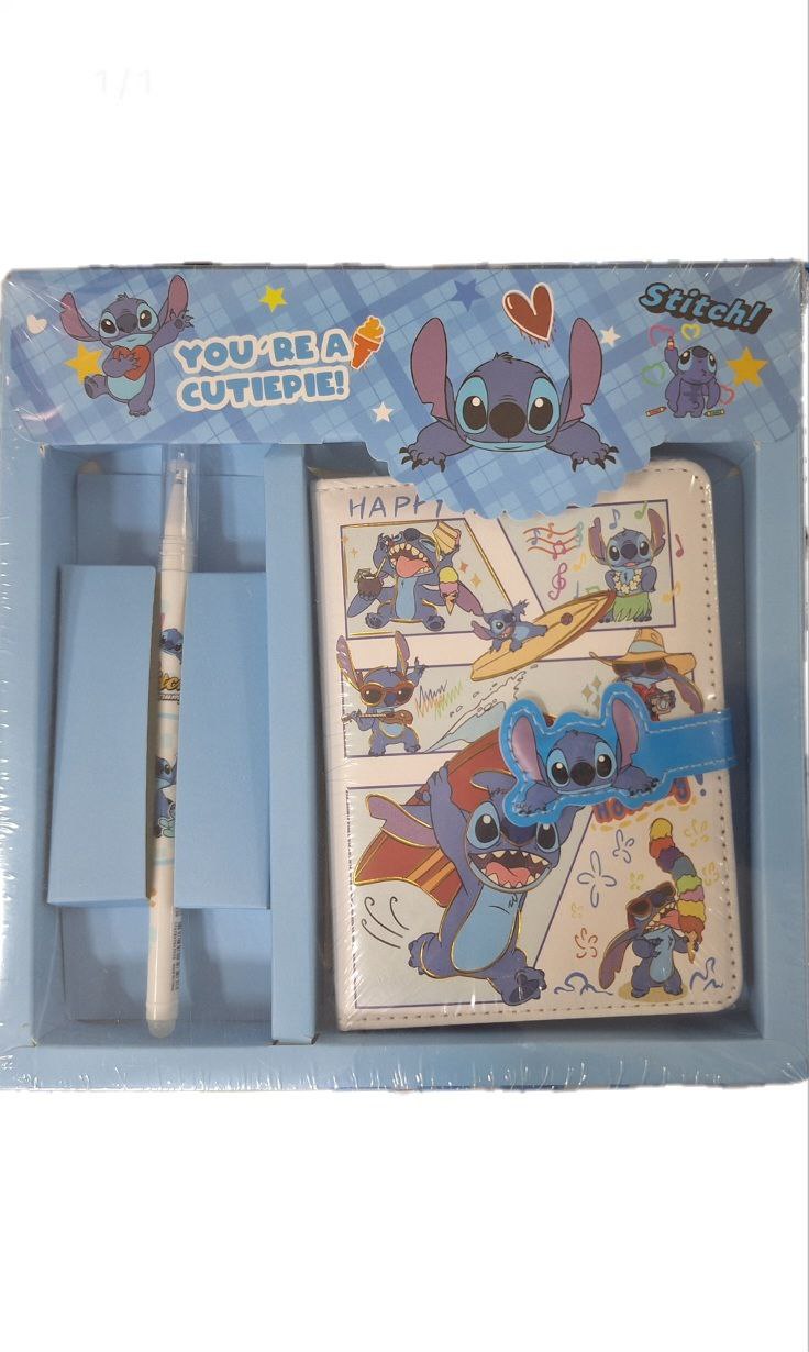 Подарите вдохновение и хорошее настроение с ярким набором "Стич"! Этот стильный комплект включает всё, что нужно для творчества, записей и школьных заметок — он точно понравится поклонникам забавного инопланетянина.