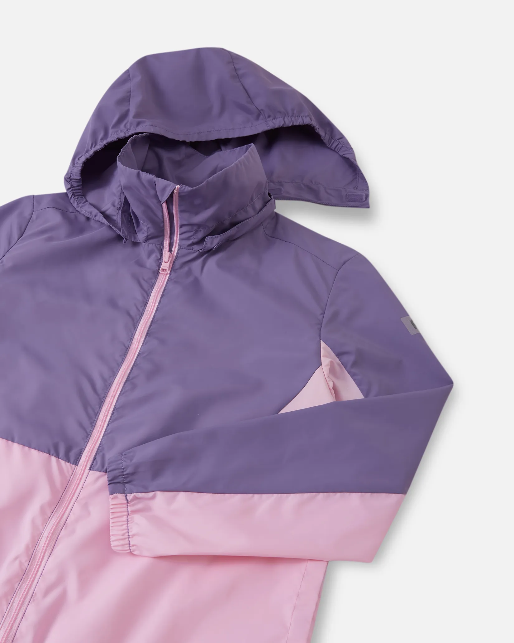 Лёгкая ветровка станет надёжным вариантом для активных прогулок на улице в переменчивую погоду. Ветрозащитный, водо- и грязеотталкивающий материал защищает от внешних воздействий и обеспечивает защиту от ультрафиолета UPF 50+. Вентиляция на спинке и в капюшоне с сетчатой подкладкой помогает поддерживать комфорт во время активных игр. Съёмный капюшон повышает безопасность, а эластичные манжеты и подол обеспечивают аккуратную посадку. Полноразмерная молния с защитой подбородка облегчает надевание, а боковые карманы подходят для хранения мелочей. Куртка легко складывается в собственный карман, что удобно для прогулок и путешествий.
