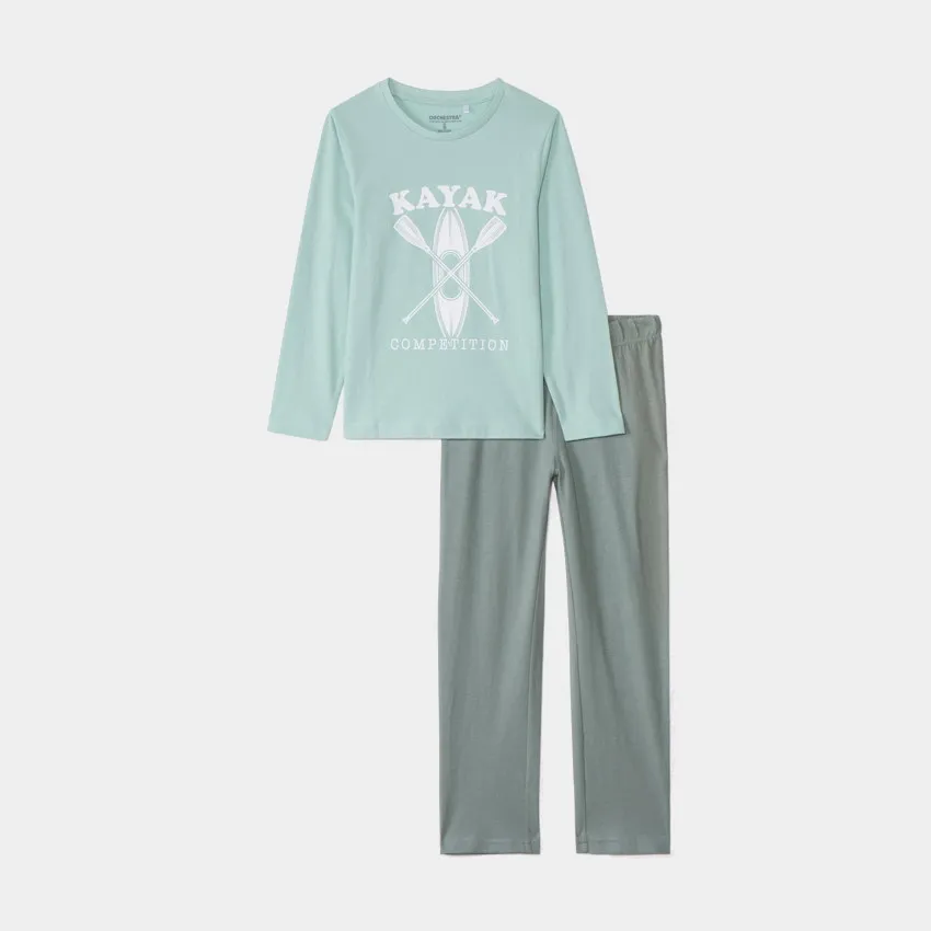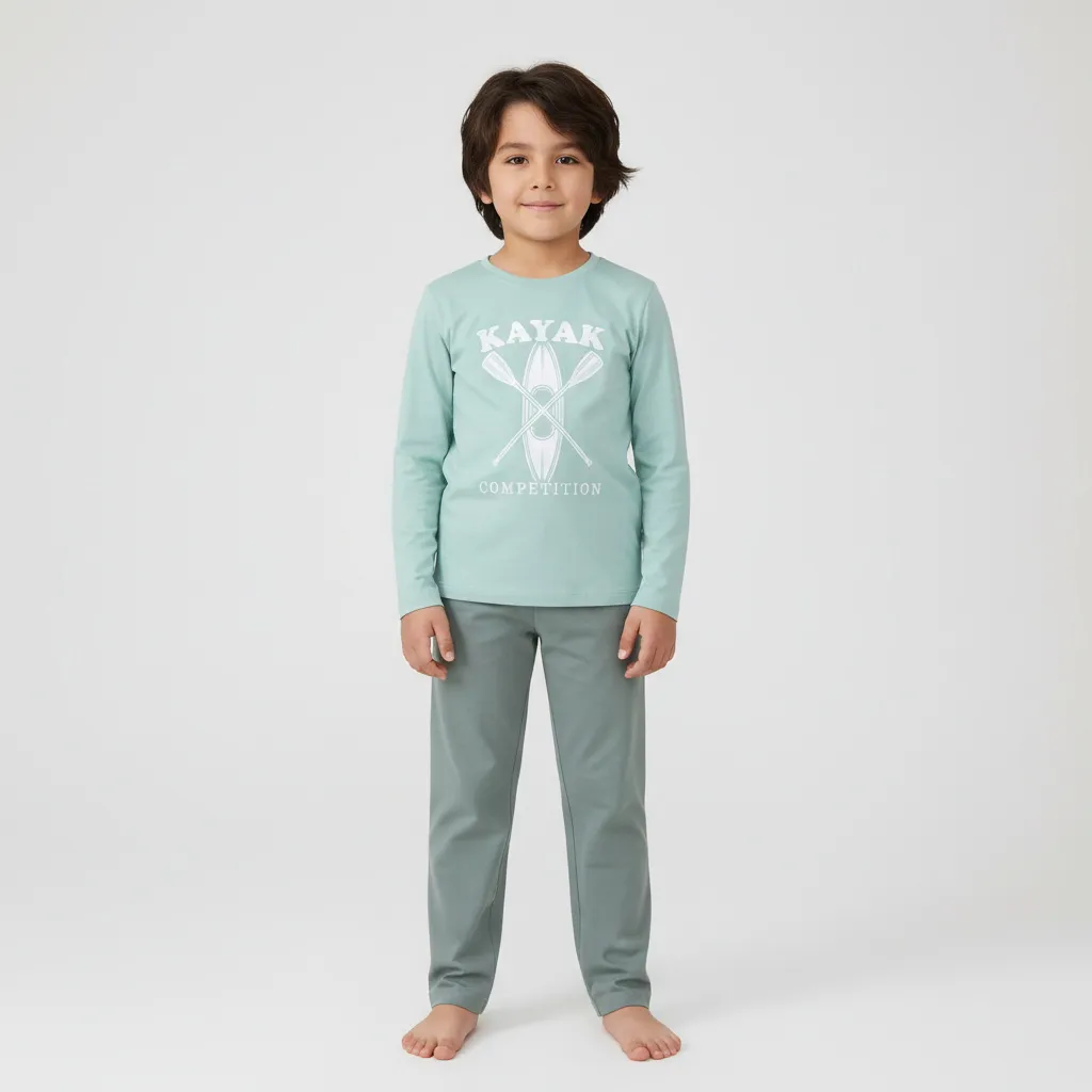 Пижама для мальчиков из натурального хлопка создана для комфортного сна и отдыха. Мягкий, дышащий материал приятен к коже и подходит для ежедневного ношения. Лонгслив украшен оригинальным принтом. Брюки с удобной эластичной резинкой на талии обеспечивают комфортную посадку и свободу движений. Практичный и стильный комплект для уютных вечеров и сладких снов.