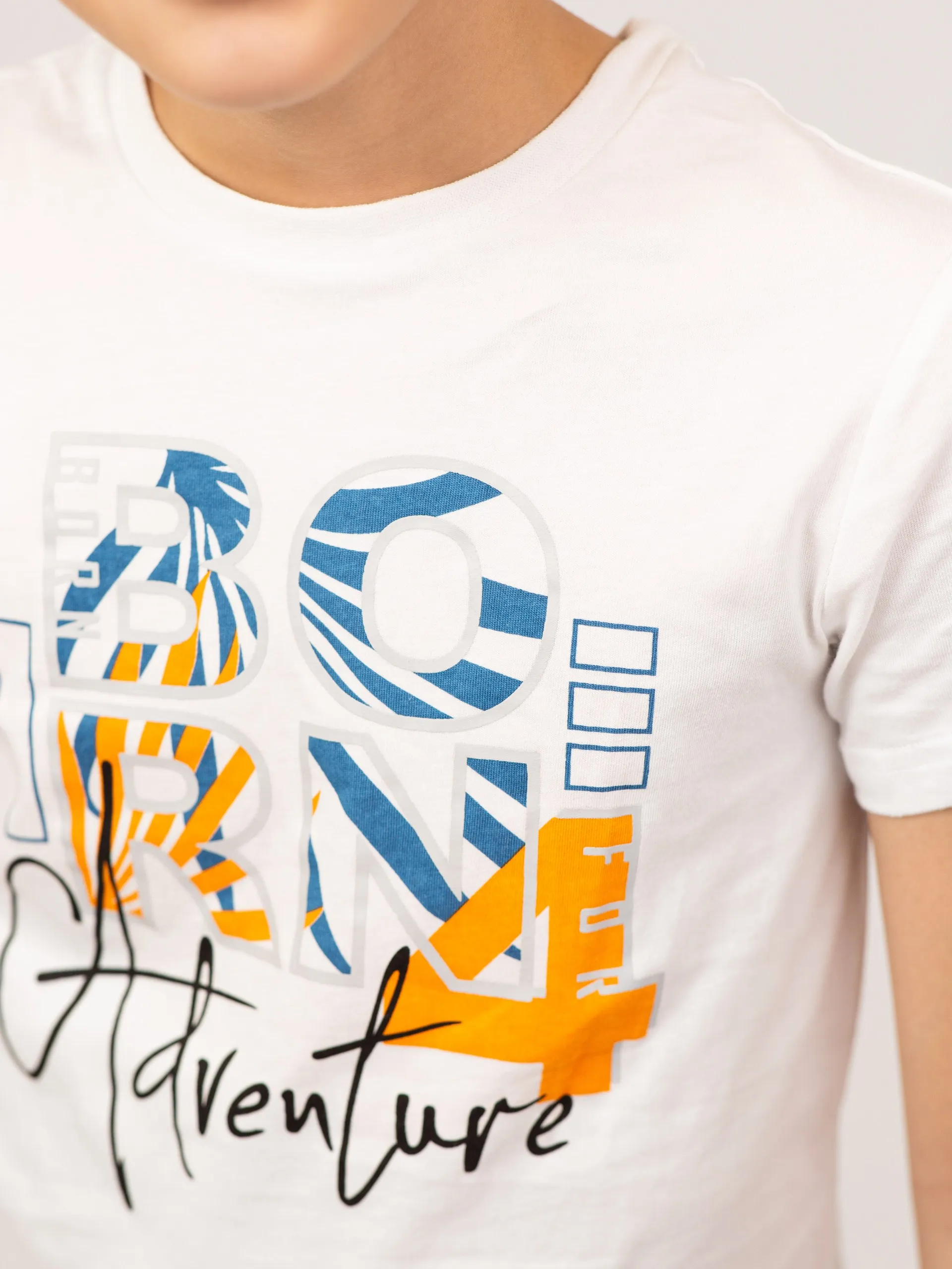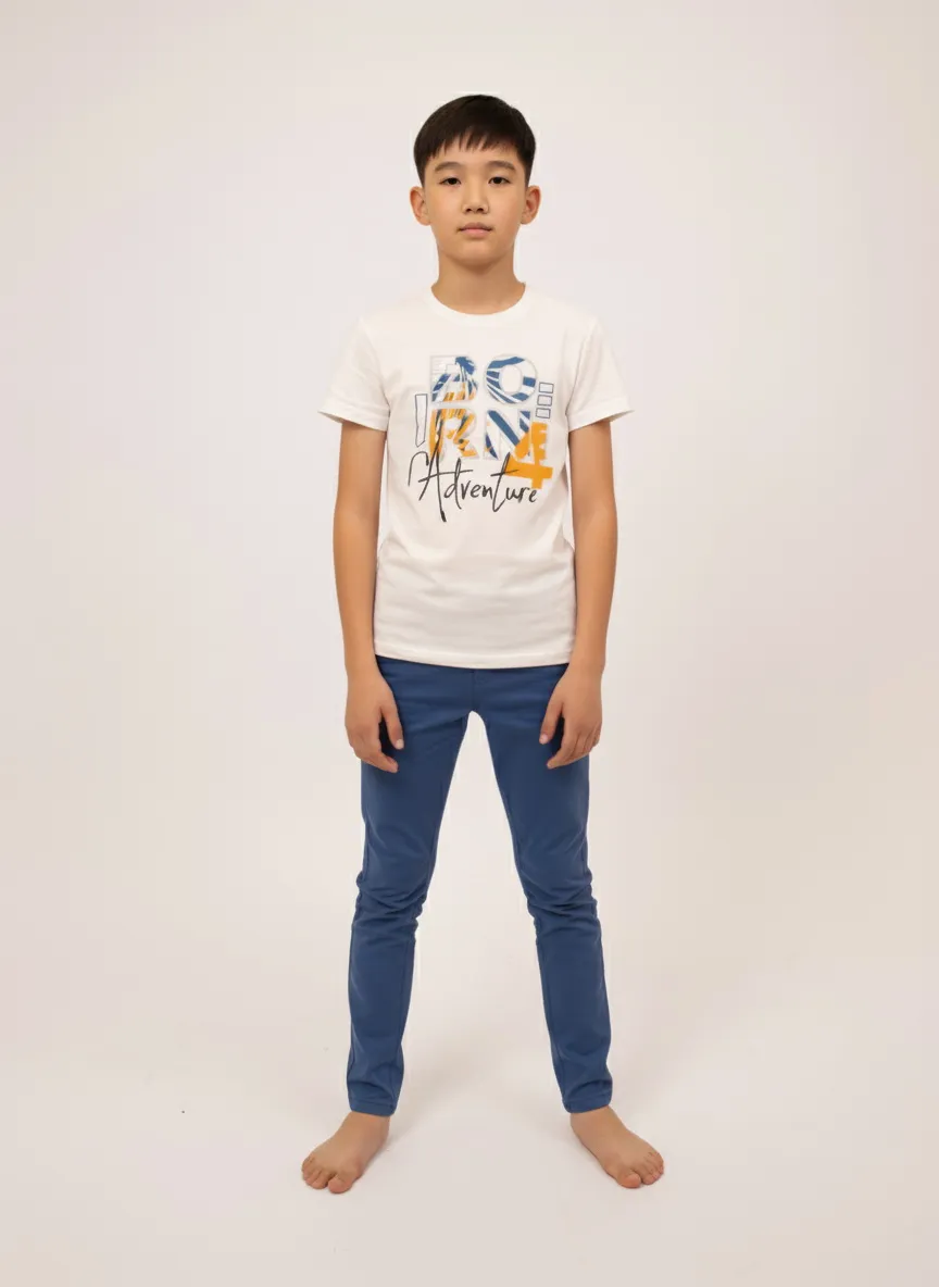 | Детская пижама для мальчика выполнена из мягкого и приятного к телу хлопка, обеспечивающего комфорт во время сна. Комплект состоит из футболки с коротким рукавом и брюк на эластичном поясе. Верх украшен стильным принтом с надписью “Born 4 Adventure”, вдохновляющей на новые открытия. Прямая посадка и дышащий материал обеспечивают свободу движений и уют в любое время суток. Отличный выбор для отдыха и спокойного сна. |