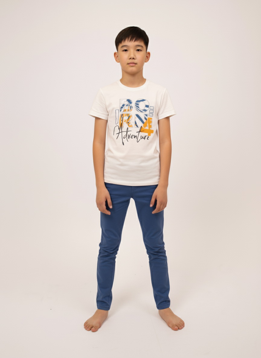 | Детская пижама для мальчика выполнена из мягкого и приятного к телу хлопка, обеспечивающего комфорт во время сна. Комплект состоит из футболки с коротким рукавом и брюк на эластичном поясе. Верх украшен стильным принтом с надписью “Born 4 Adventure”, вдохновляющей на новые открытия. Прямая посадка и дышащий материал обеспечивают свободу движений и уют в любое время суток. Отличный выбор для отдыха и спокойного сна. |
