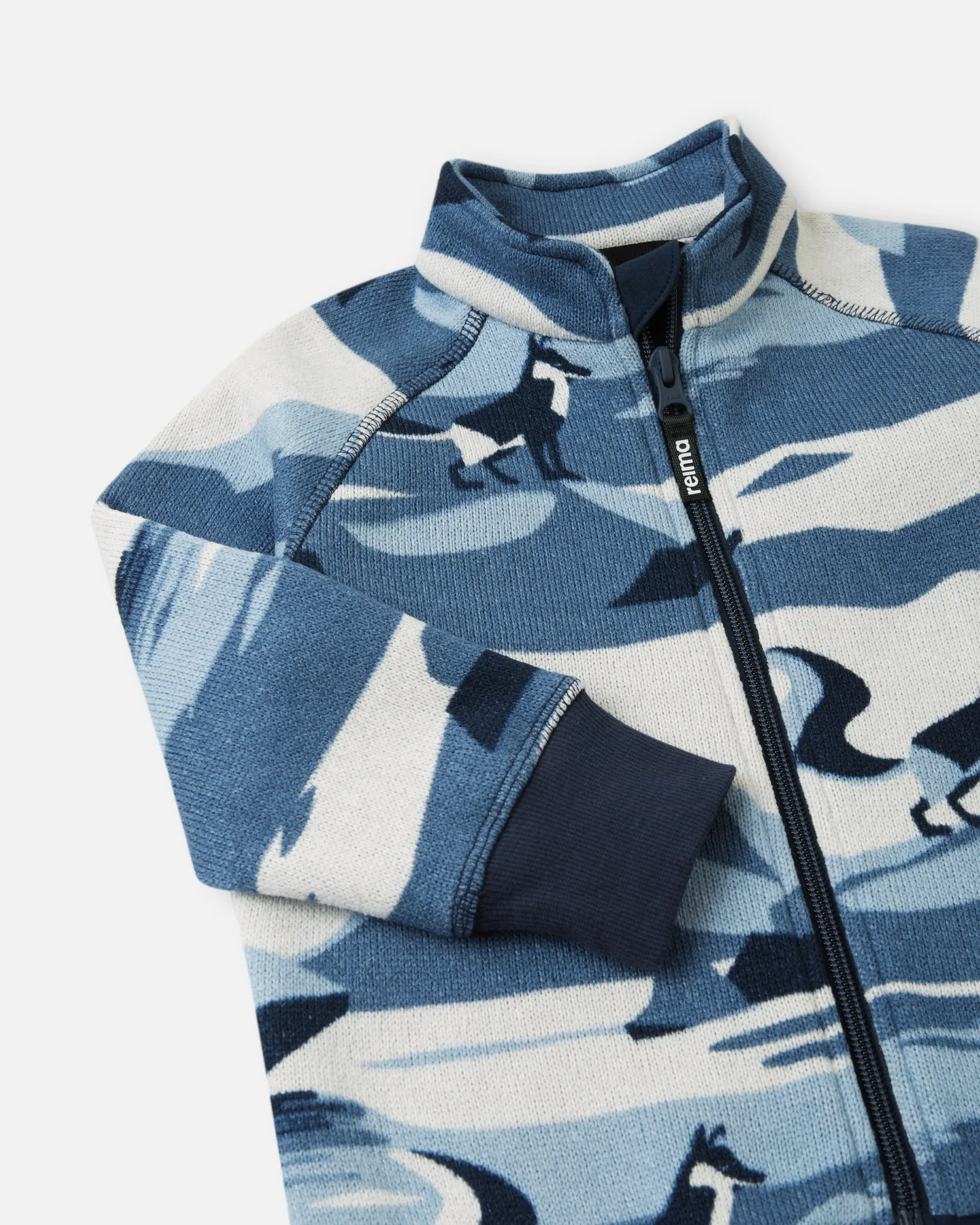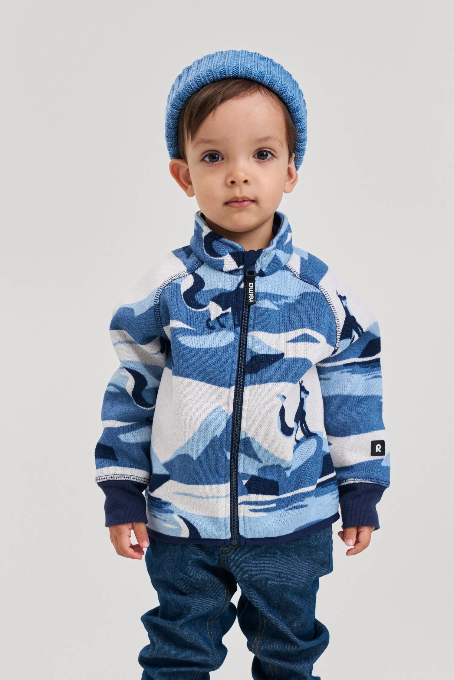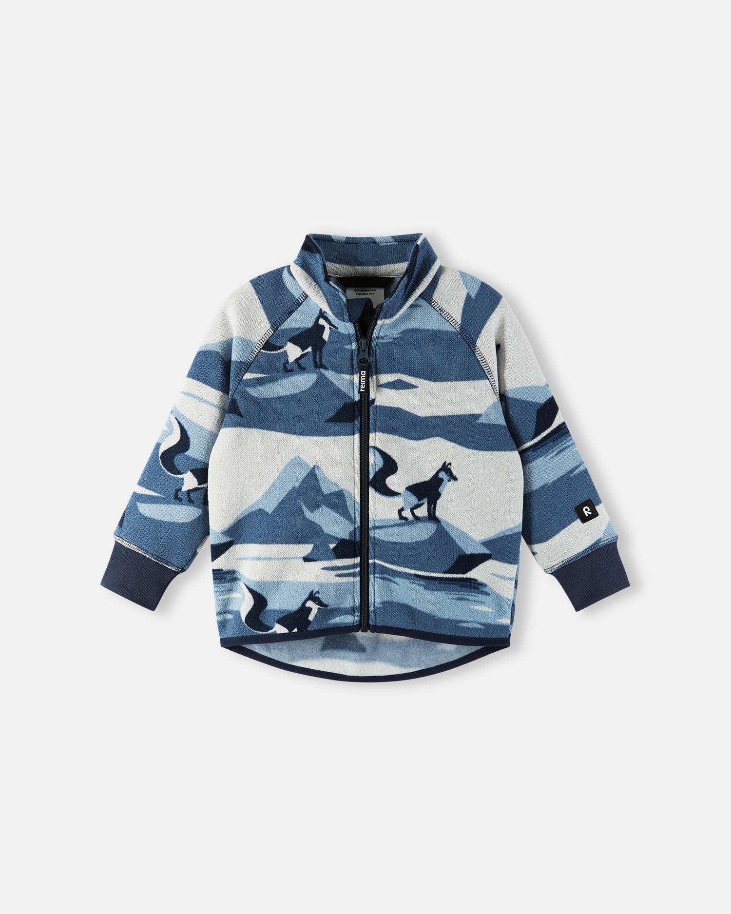 Мягкий вязаный меланжевый флис очень стильно смотрится, он мягкий и уютный, как пряжа, но при этом имеет все достоинства флиса. Флис – теплый и дышащий материал, который быстро сохнет и не парит. Молния во всю длину облегчает надевание, а защита для подбородка не даст поцарапать шею и подбородок. Классный модный рисунок!