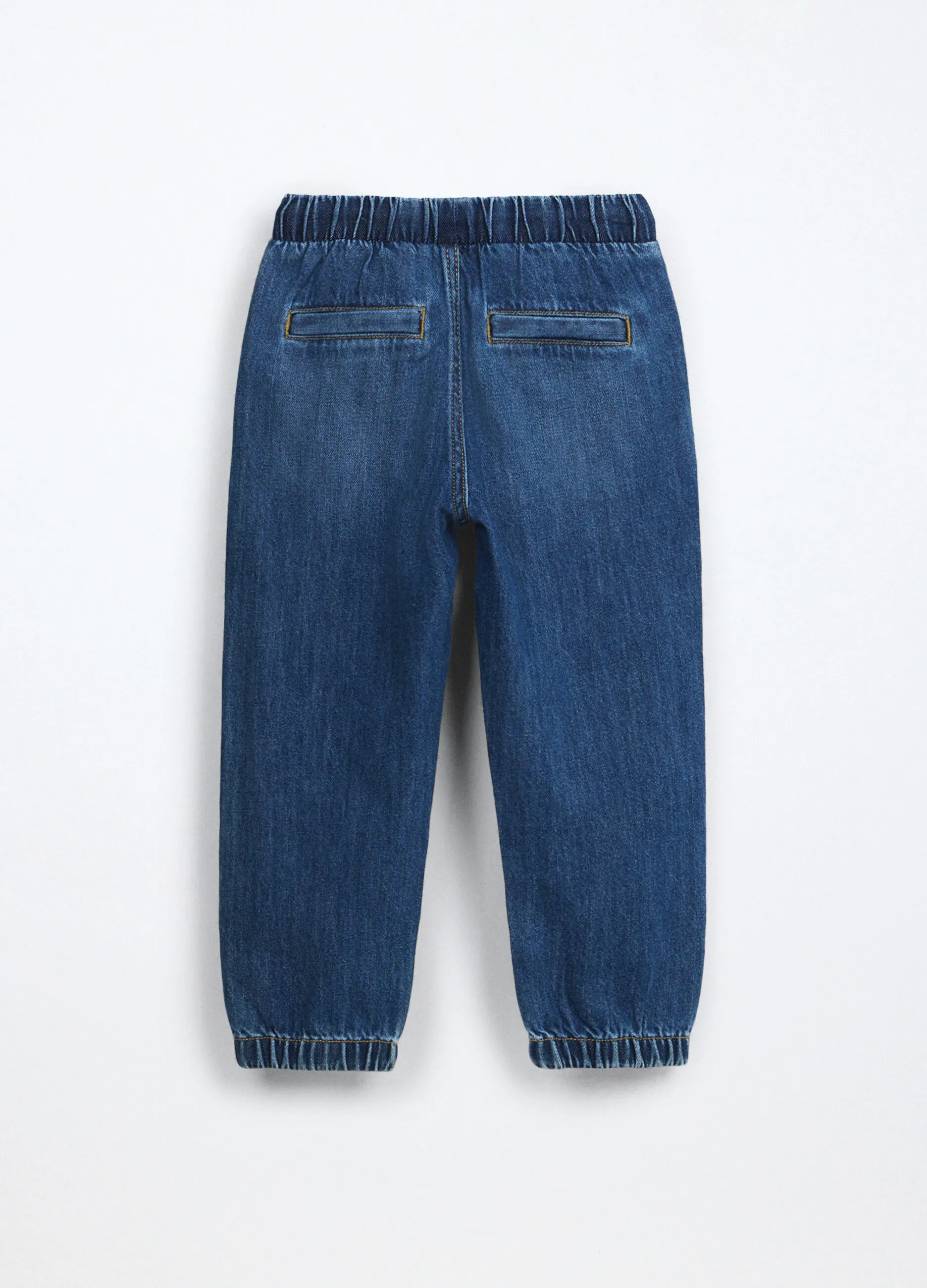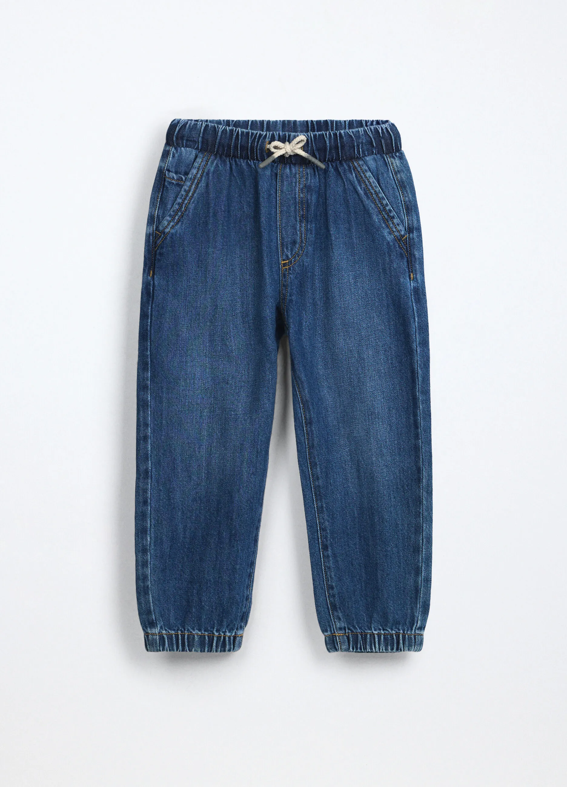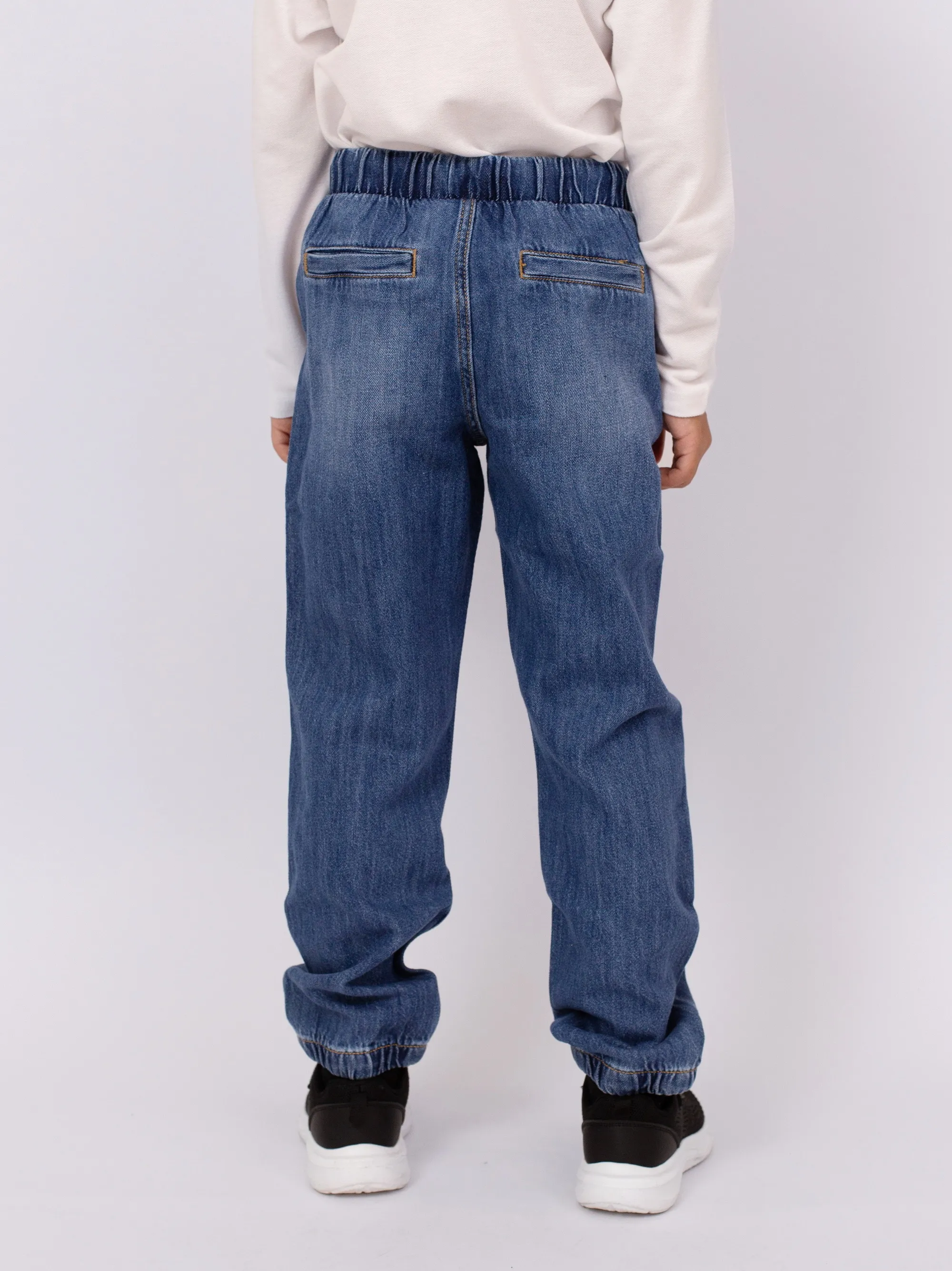| Джинсовые брюки-джоггеры из мягкой хлопковой смеси — удобный и стильный вариант для повседневной носки. Эластичный пояс со шнурком обеспечивает хорошую посадку. Модель дополнена двумя карманами спереди и эластичными манжетами по низу штанин для комфорта и свободы движений. |